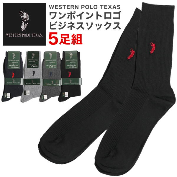 靴下 メンズ ビジネス 5足セット 5足組 POLO 刺繍 ロゴ ソックス おしゃれ ブランド Western Polo Texas