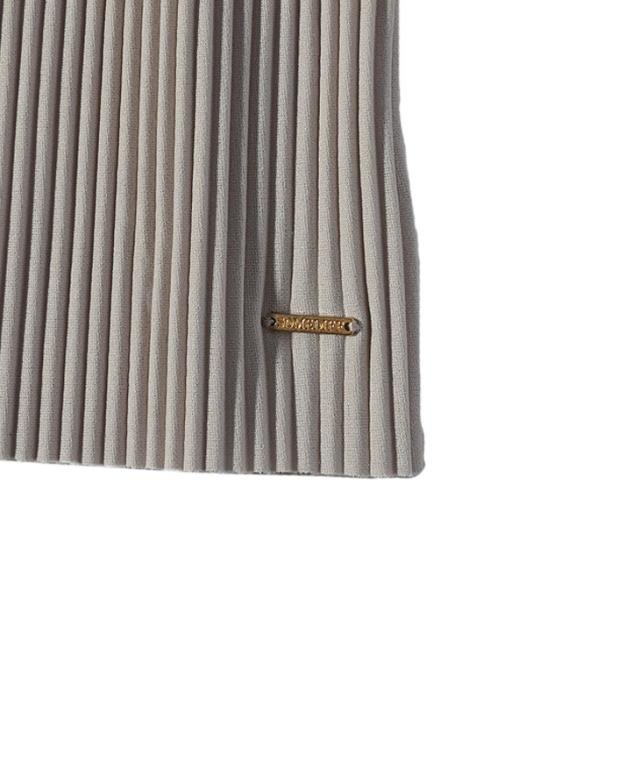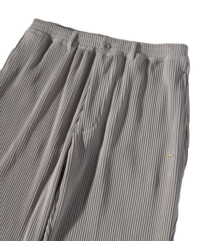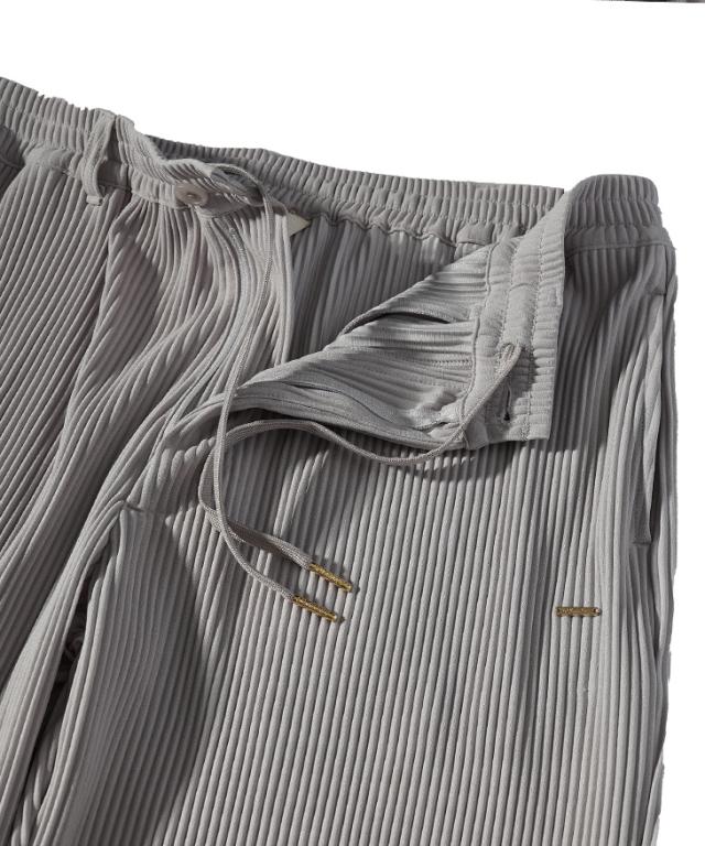 ロングパンツは、縦に流れるプリーツが脚をすっきり見せ、