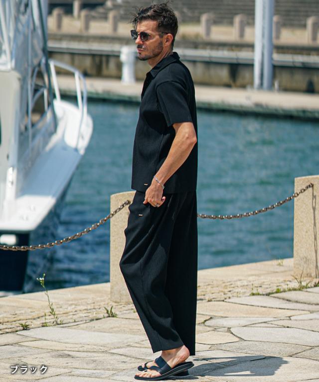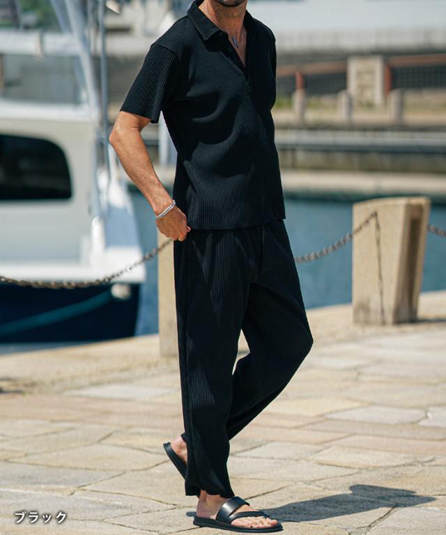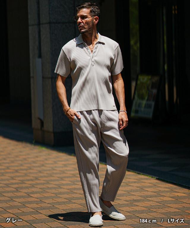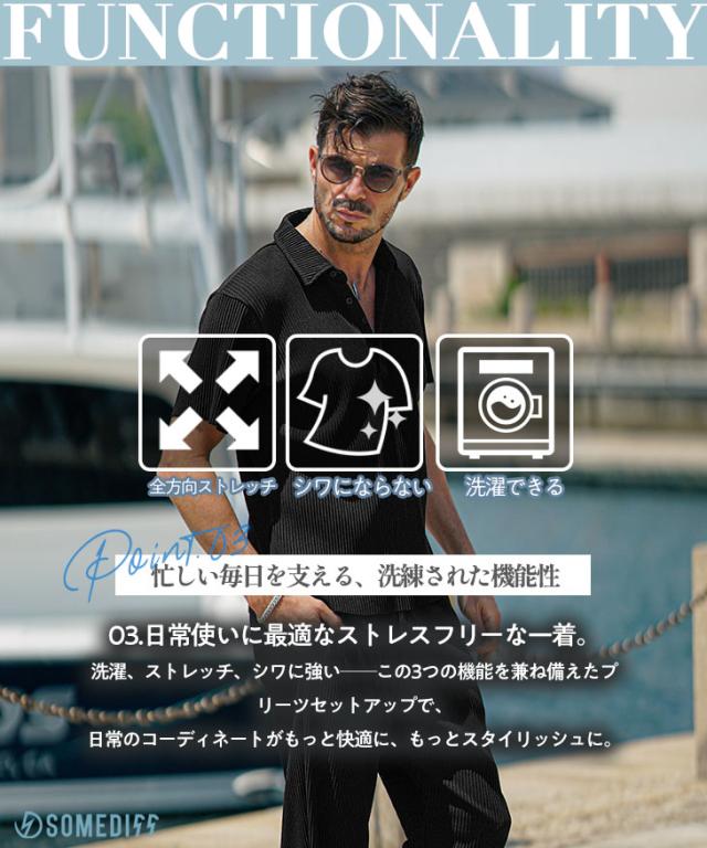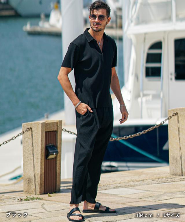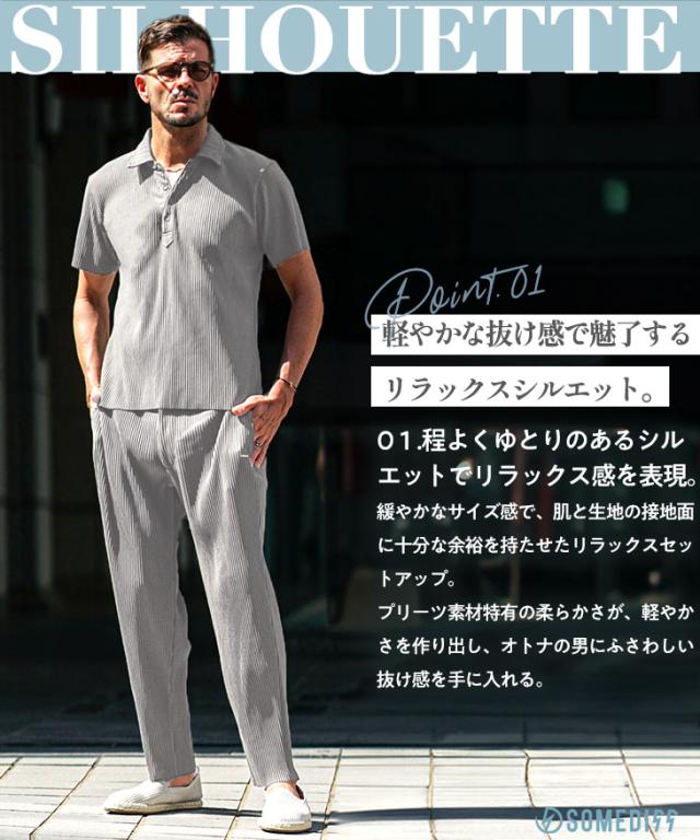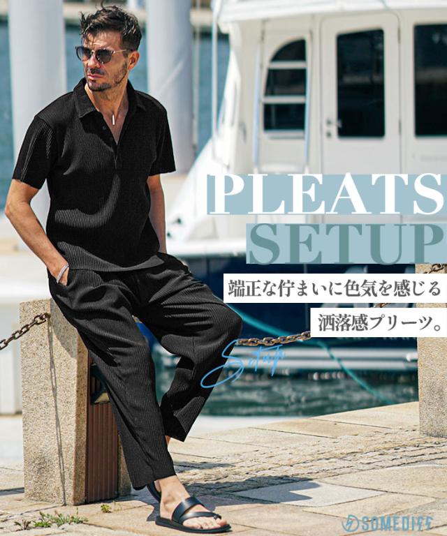 セットアップ メンズ ブランド 夏 上下セット メンズ ポロシャツ プリーツ 夏 新作 イージーパンツ テーパード リゾート系 オラオラ系 お兄系 ちょい悪 メンズファッション サムディフ SOMEDIFF