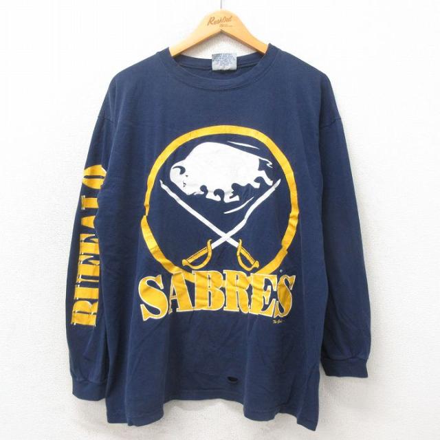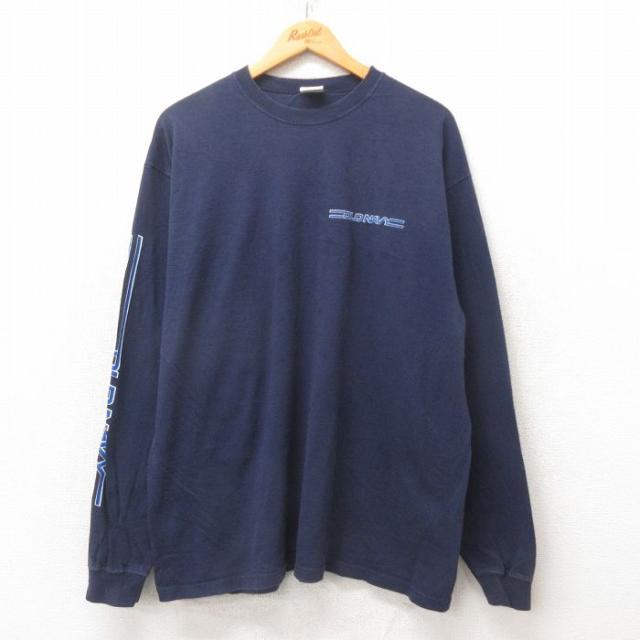 【商品名】 XL★古着 長袖 ビンテージ Tシャツ メンズ 00年代 00s ミリタリー ネイビー NAVY コットン クルーネック 紺