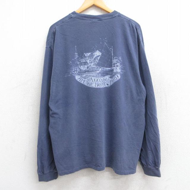 古着 長袖 ビンテージ Tシャツ メンズ 00年代 00s ミリタリー ネイビー NAVY コットン クルーネック 紺 XLサイズ 中古 中古 古着