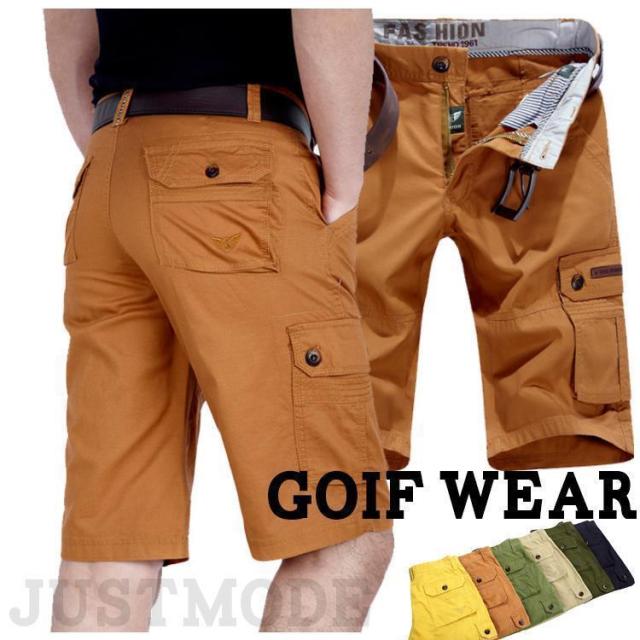 ゴルフウェア ハーフパンツ カーゴパンツ カーゴショート メンズ ハーフ丈 スポーツ 無地 ショートパンツ 夏 短パン ゆったり カジュアル アウトドア