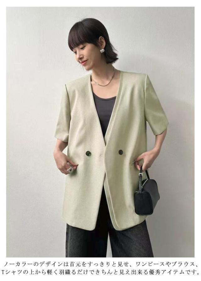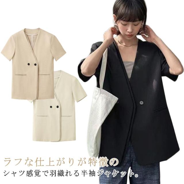 ノーカラージャケット サマージャケット カーディガン 前開き レディース シャツジャケット 半袖 ジャケット ライトアウター 日焼け対策 冷房対策 ゆったり カジュアル 女性 OL 通勤 オフィス 大人可愛い 春夏 サマースーツ アウター