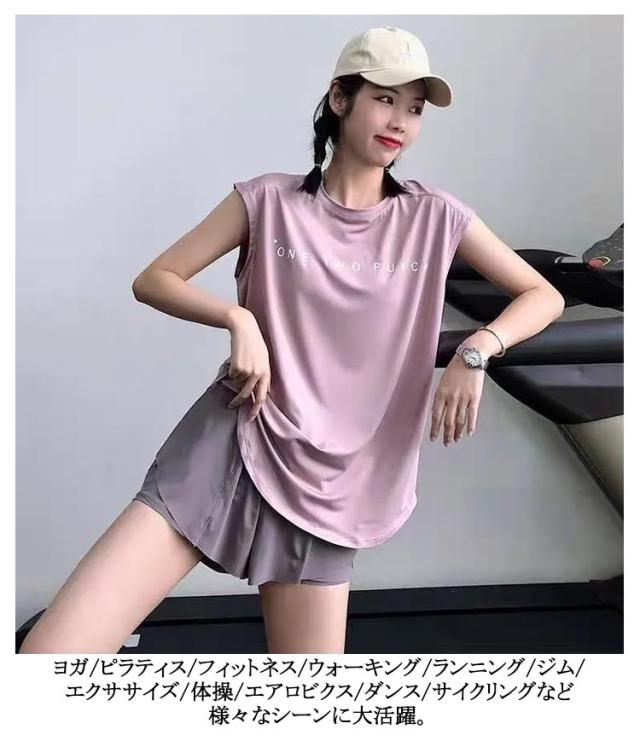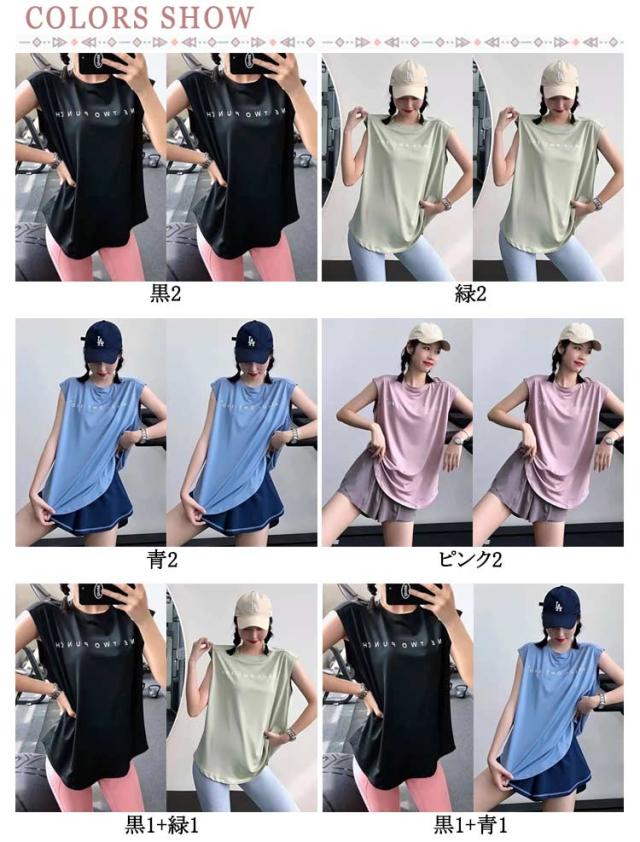 おしゃれ 半袖 ヨガトップス トップス 2枚組 通気性 レディース 吸汗 フレンチスリーブ ラウンドヘム ホットヨガ ヨガウェア 体型カバー 速乾 吸汗 スポーツウェア 伸縮性 ゆったり フィットネスウェア ランニングウェア ピラティス ジムウェア ダンス tシャツ