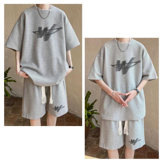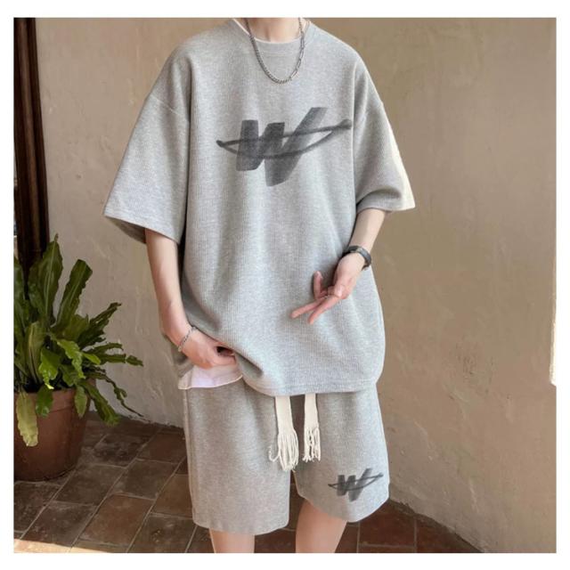 セットアップ メンズ サマースーツ 上下セット 半袖Tシャツ ショーツ ショートパンツ ハーフパンツ ワッフル編み カジュアル ガウチョパンツ 送料無料 ワイドパンツ ゆったり 通気性 スポーツウェア ルームウェア お兄系 パジャマ 春 夏用 ランニング ウォーキング 散歩