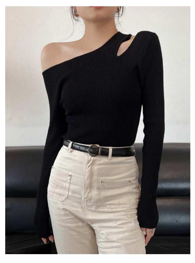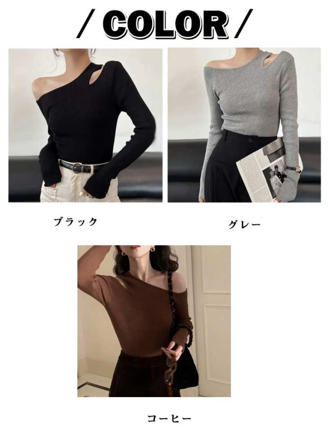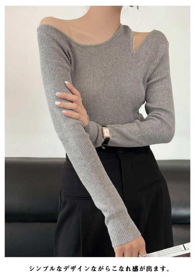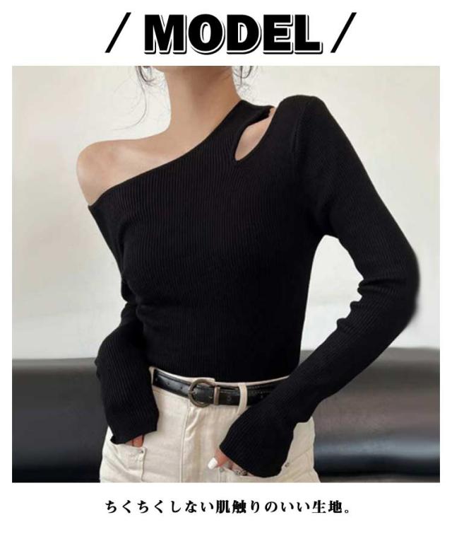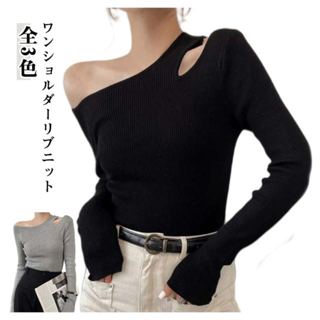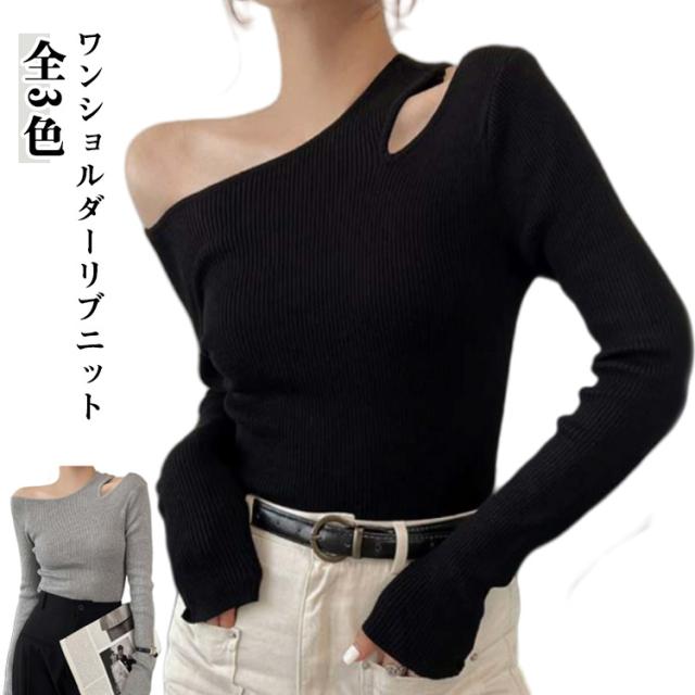 ニット ワンショルダー レディース トップス オフショル リブニット オフショルダー 長袖 ニットプルオーバー セーター ニットソー 春秋 カットソー 細見え 大人可愛い シンプル おしゃれ カジュアル フェミニン 春 秋 冬 送料無料