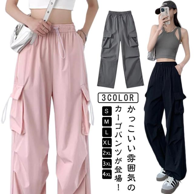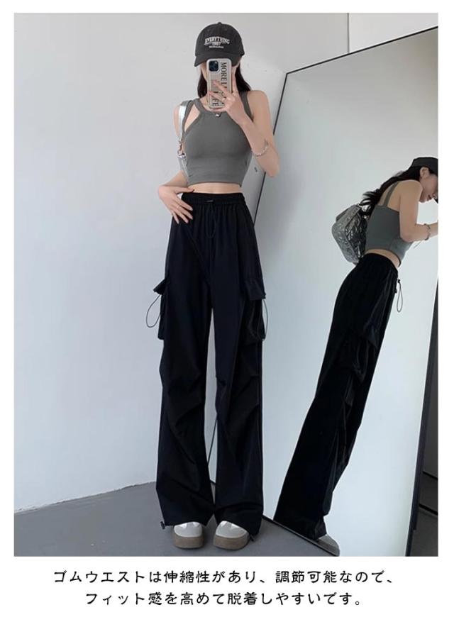 カーゴパンツ レディース ロングパンツ ワイド 薄手 ボトムス 春 夏 秋 パンツ ズボン ゆったり 無地 ウエストゴム ダンス用 動きやすい 女性用 シンプル 普段着 通勤 かっこいい 20代 30代 プレゼント ギフト 贈り物 おしゃれ カジュアル