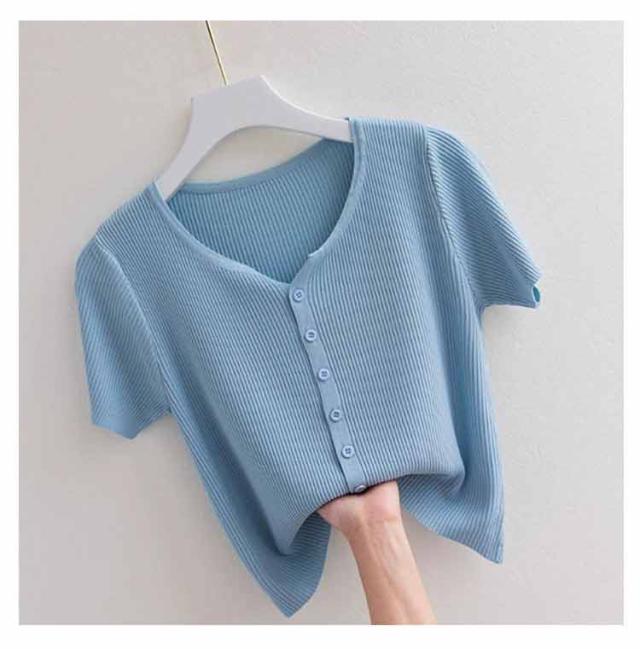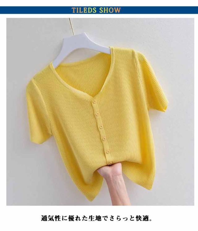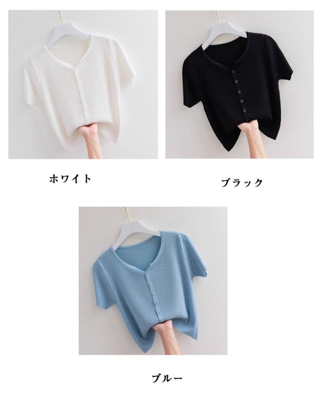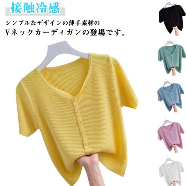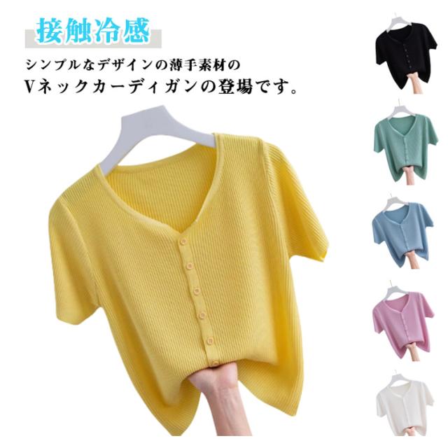 半袖 カットソー レディース サマーニット 半袖Tシャツ 接触冷感 涼しい 前開き Vネック トップス 通気性 伸縮性 薄手 ひんやり 柔らかい tシャツ カーディガン ゆったり 体型カバー インナー 通勤 普段着