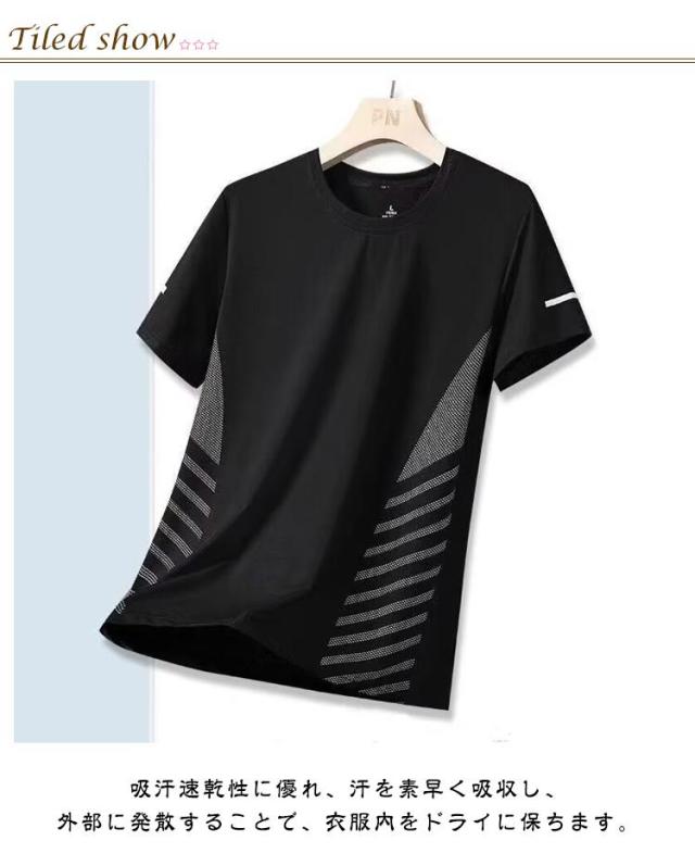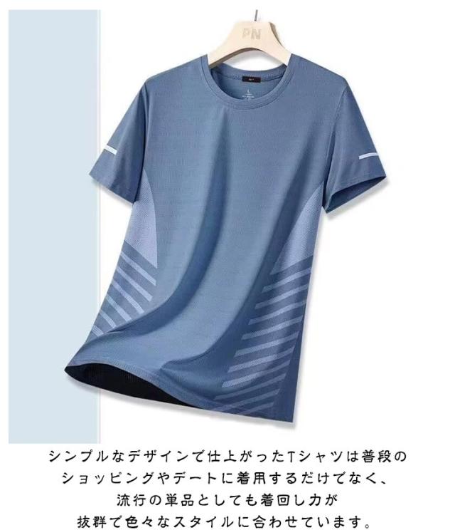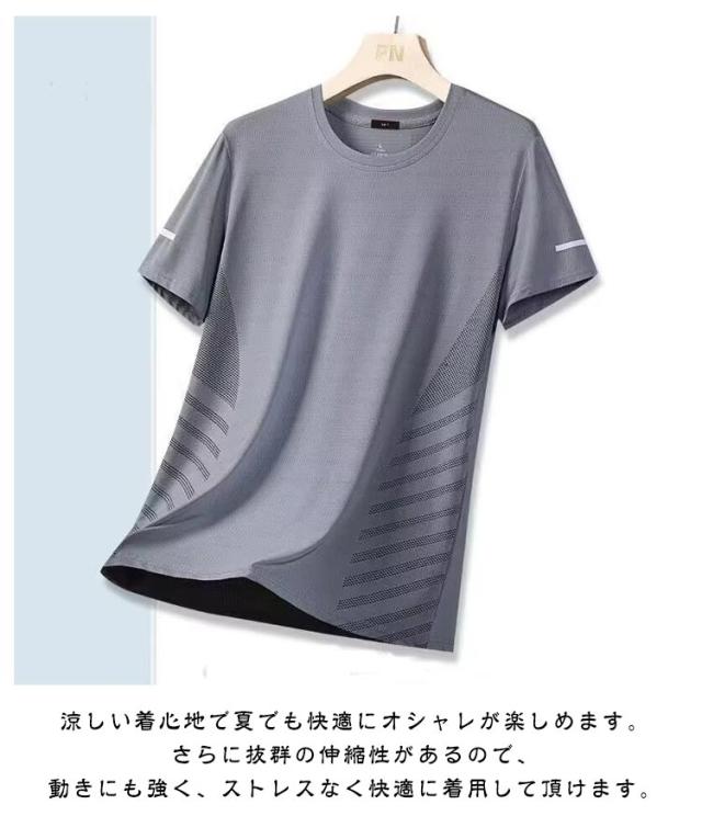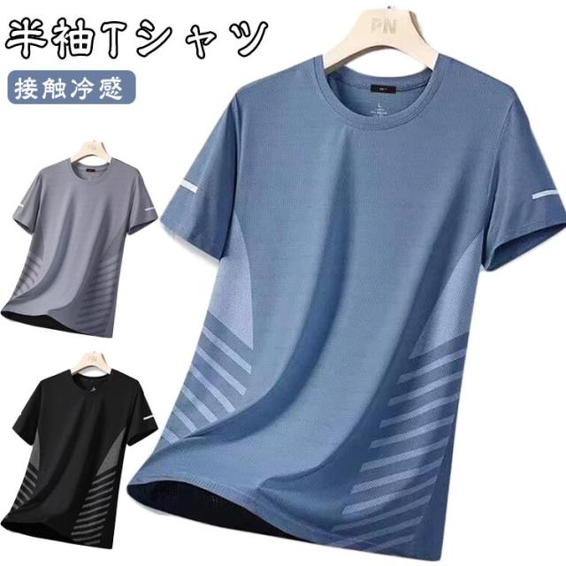 Tシャツ 半袖Tシャツ 薄手 夏 クルーネック メンズ 涼しい カットソー 接触冷感 ゆったり おしゃれ 吸汗 速乾 通気 アイスシルクTシャツ tシャツ スポーツウェア 運動着 大きいサイズ カジュアル ランニング