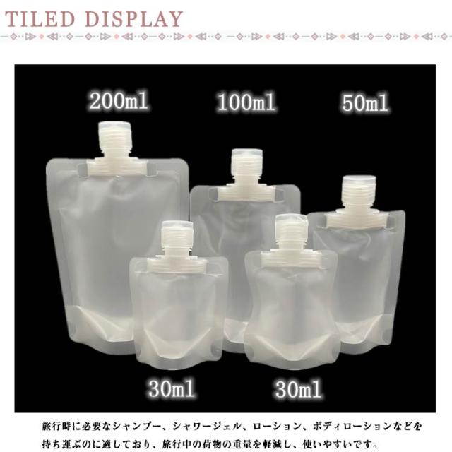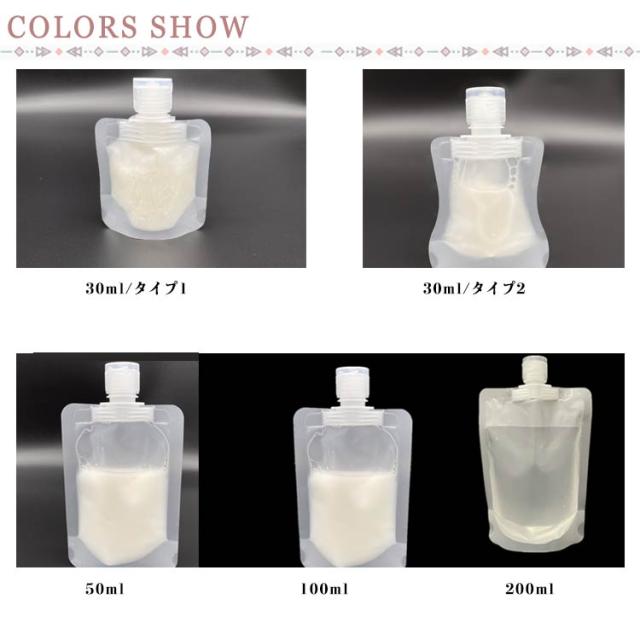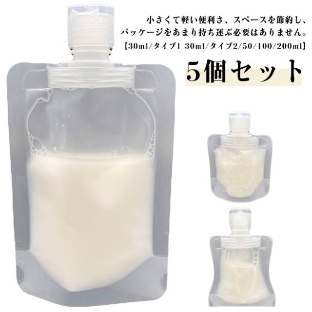 省スペース 旅行ポーチ ローション 漏れ防止 ボディソープ 袋 包装 出張用 袋入り シャンプー 詰め替え容器 使い捨て 50ml 旅行用 化粧品 旅行便利グッズ 【5個セット】【30ml/タイプ1 30ml/タイプ2 旅行ポーチ 100ml