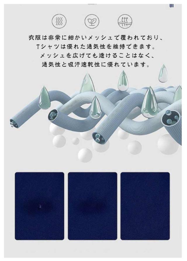| 快適で蒸し感がなく、軽いので重さが感じられません。夏に大活躍してくれるアイテムです。 衣服は非常に細かいメッシュで覆われており、Tシャツは優れた通気性を維持できます。 メッシュを広げても透けることはなく、通気性と吸汗速乾性に優れています。 優れた吸汗性と通気性で、汗を素早く吸収して乾きやすい仕様。長時間の着用でも快適さが続きます。 シンプルなジーンズやスニーカーと合わせると、活発なカジュアルスタイルが完成します。 同色のカーディガンと合わせてもよく、シャツやジャケットと合わせても同様にクールに見えます。 デザインがシンプルで、ランニングやウオーキングなどのトレーニングはもちろん、インナーシャツ、日常着、部屋着、作業着、旅行にも大活躍。家族や友達などへのギフトとして贈ることもできます。 | |