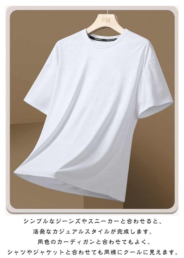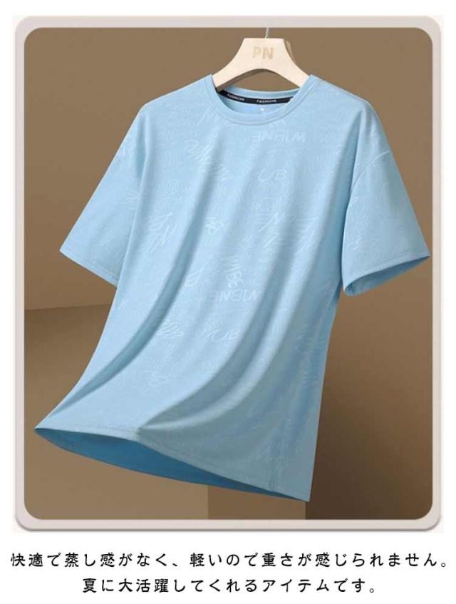 アイスシルク メンズ tシャツ Tシャツ クルーネック 薄手 半袖 Tシャツ サッカー メッシュ生地 通気性 トレーニングウェア 吸水速乾 接触冷感 運動 テニス スポーツウェア トレーニング スポーツ ゆったり 夏用