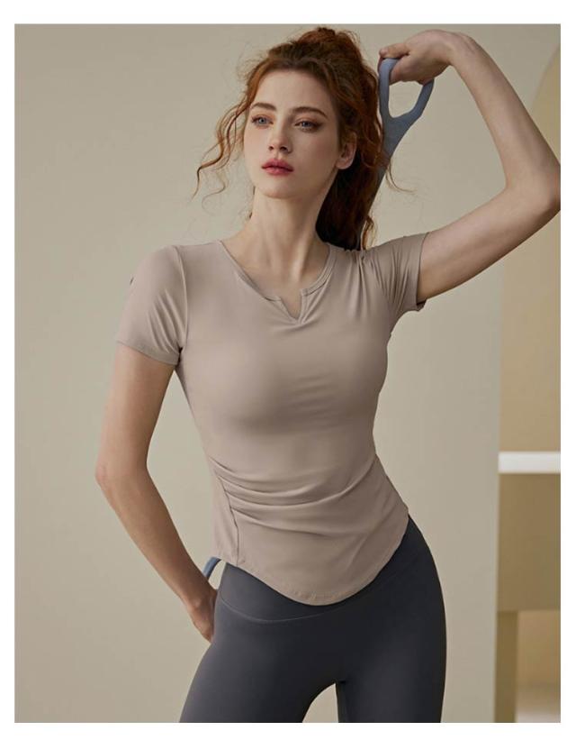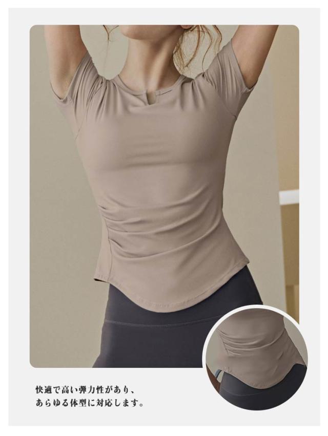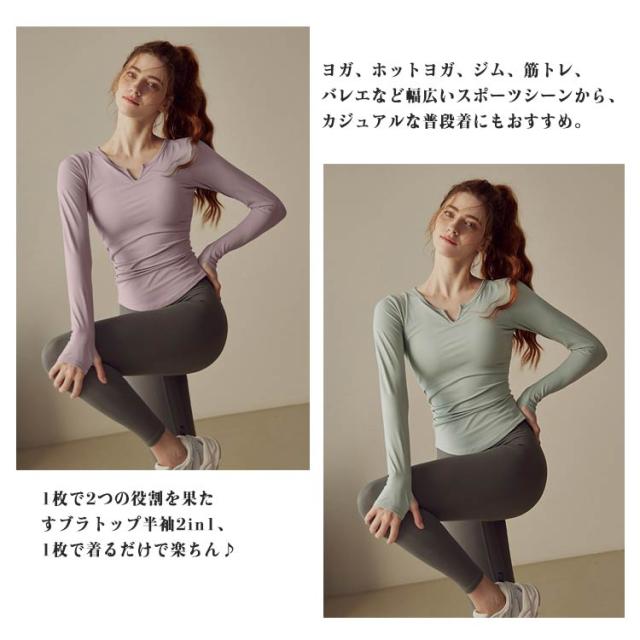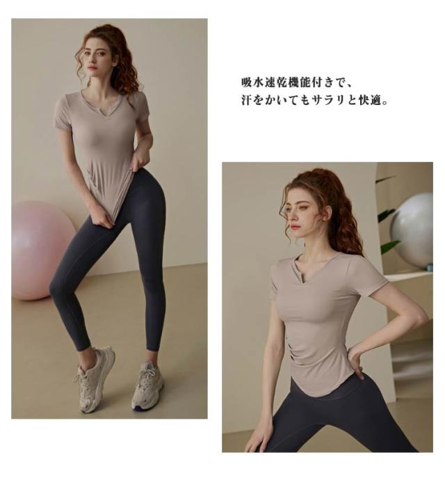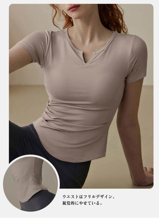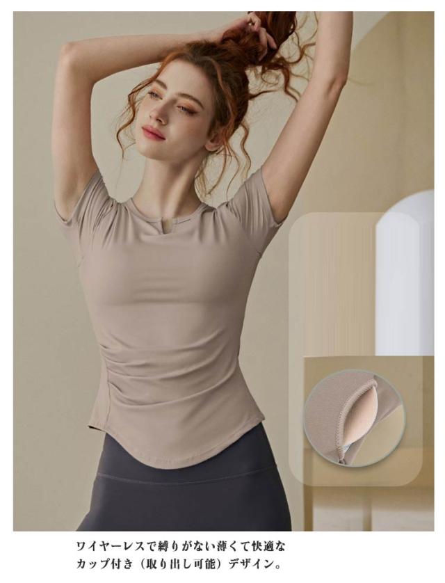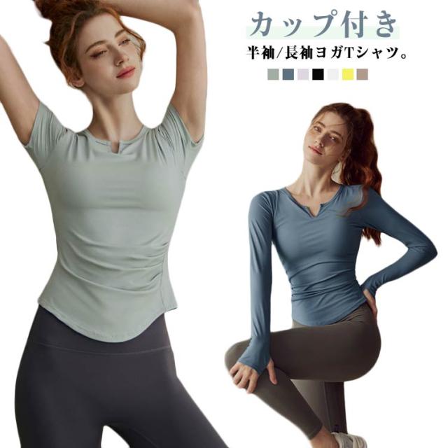 ピラティス Tシャツ レディース ヨガウェア フィットネス 通気性 トップス ヨガ インナー カップ付き ジム 半袖 ヨガTシャツ カットソー Vネック 体型カバー 吸汗速乾 長袖 ストレッチ スポーツ ヨガトップス フィット感
