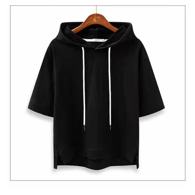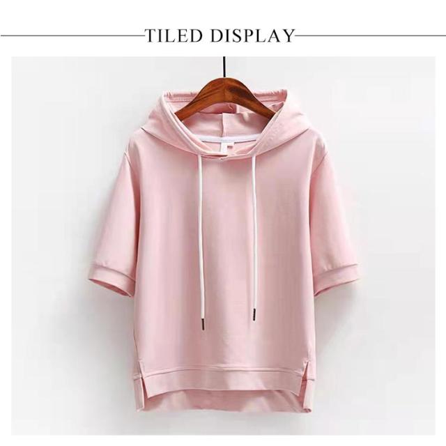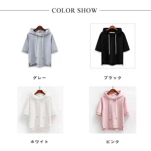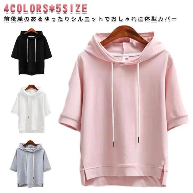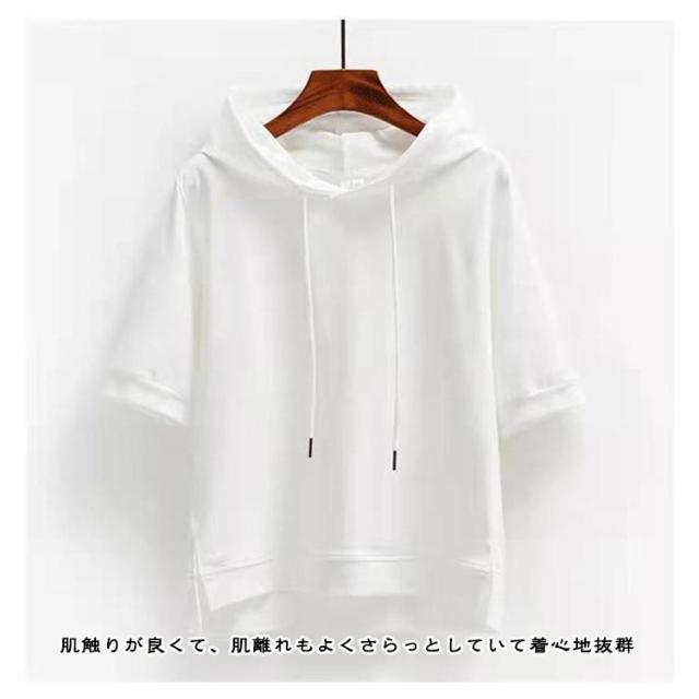 パーカー トップス シンプル 前後差 カットソー 無地 パーカー 夏 レディース 夏パーカー サイドスリット 春夏 パーカー フード付きtシャツ プルオーバー パーカー レディース 半袖 部屋着 カジュアル おしゃれ