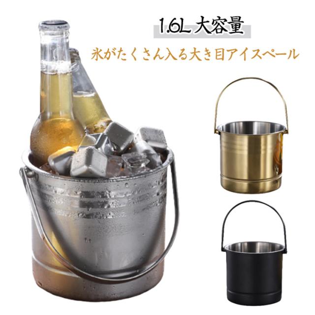 シャンパン 氷入れ 保冷容器 ステンレス アイスペール アイスペール 持ち運び 耐久性 氷バケツ 溶けない ハンドル付き アイスバケット 大容量 ワイン 1.6L パーティー 居酒屋 飲食店 保冷用