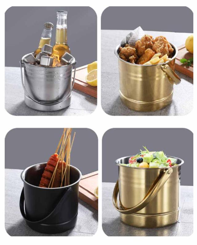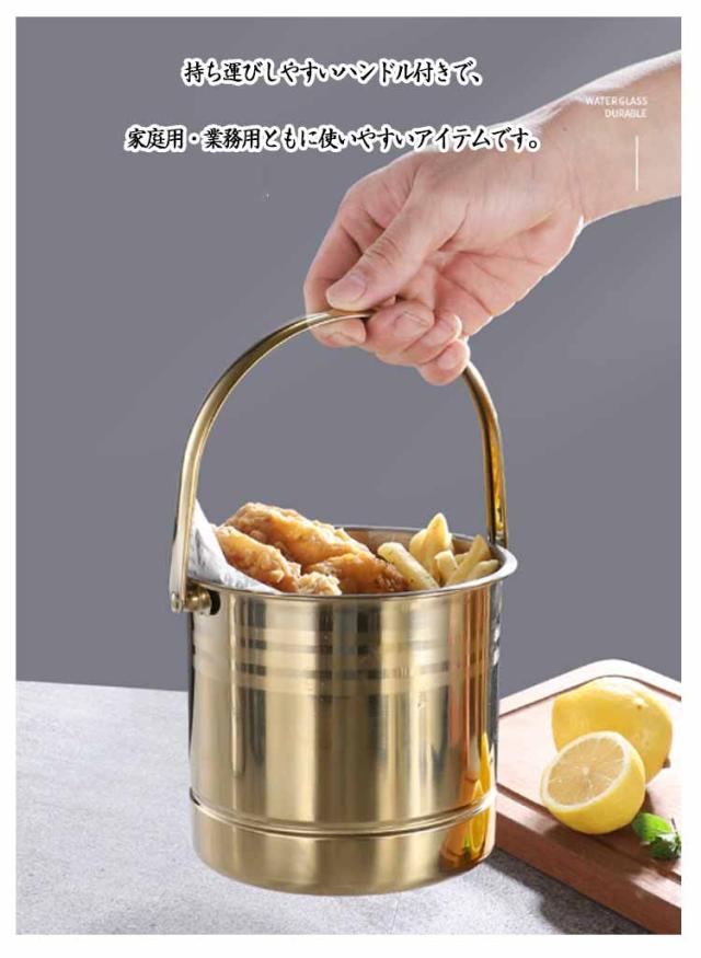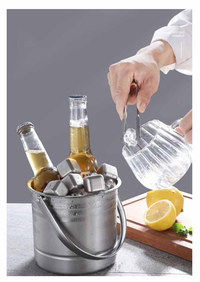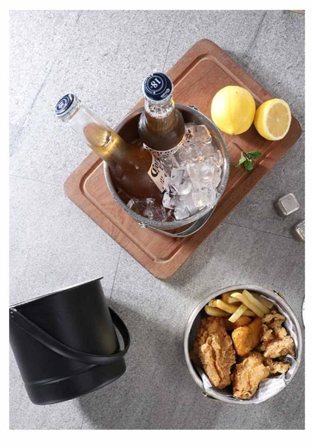 | 氷がたくさん入る大き目アイスペール。 耐久性にも優れたステンレス素材で、お手入れも簡単。 持ち運びしやすいハンドル付きで、家庭用・業務用ともに使いやすいアイテムです。 二重構造で冷気を逃さず、氷が溶けにくい設計だから、パーティーや飲食シーンでも安心して使えます。 ワイン・シャンパン・カクテルの保冷用としても使える万能アイテムです。 | |