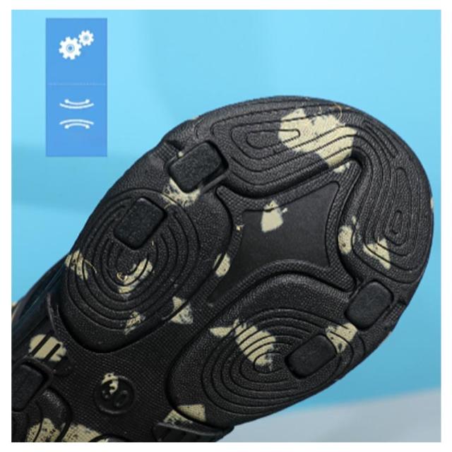 | 軽く柔軟性のある素材が足にフィットし脱げにくく、つま先と足の甲をしっかりカバーしてくれるのでケガを防止します。 面ファスナーで脱ぎ履きしやすく、フィット感のある履き心地です。 | |