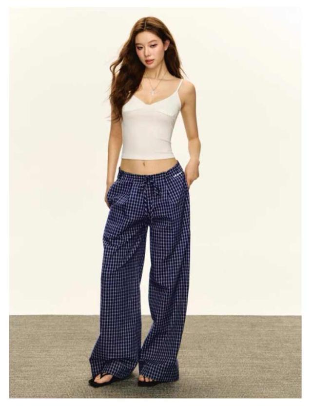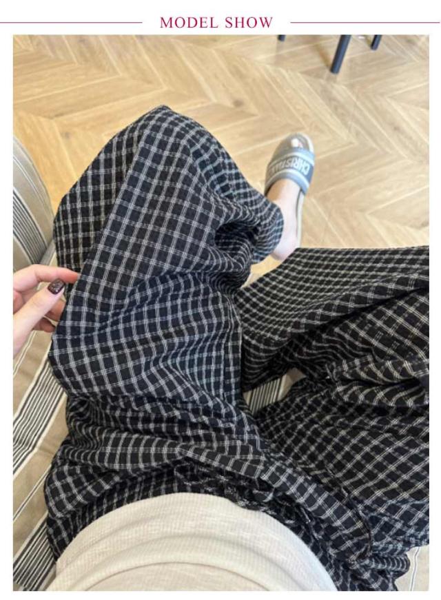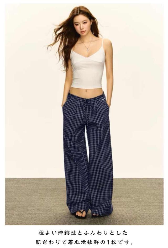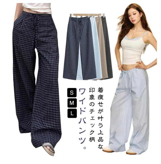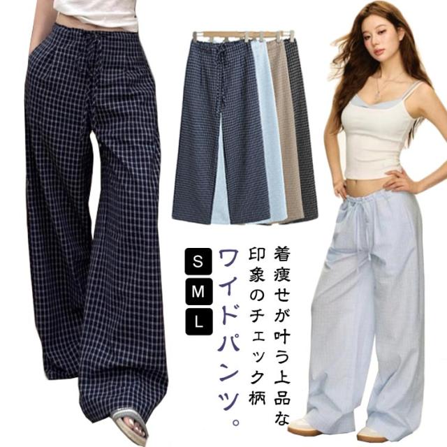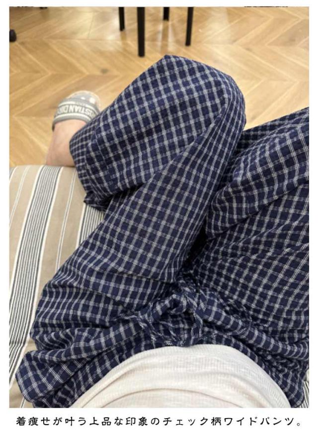 ワイドパンツ ゆったり ボトムス 体型カバー ワイド レディース 落ち感素材 パンツ 美脚 チェック ズボン チェックパンツ ワイドパンツ イージーパンツ 大人可愛い ナチュラル カジュアル服 ゆったり ウエストゴム 春 夏