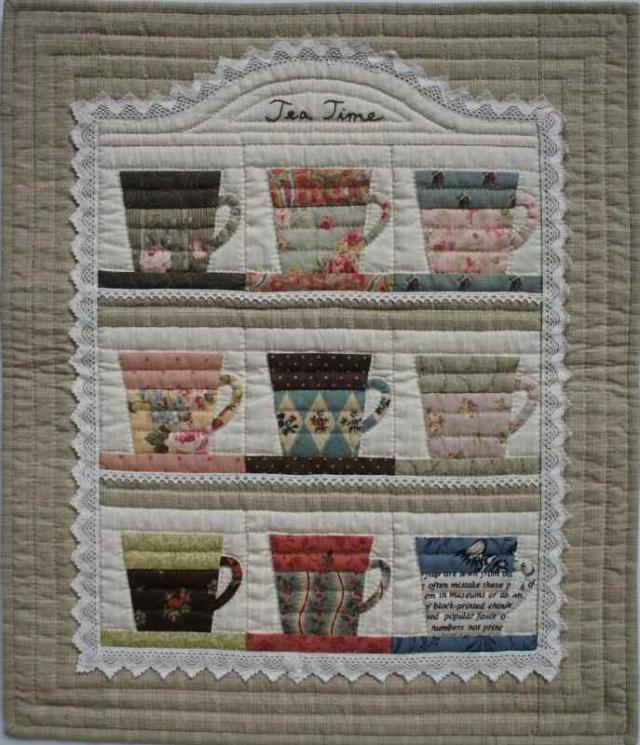AKEMI SHIBATA [柴田明美のパッチワークキット] コーヒーカップコレクションのタペ 出来上がり作品サイズ縦50cm×横42cm