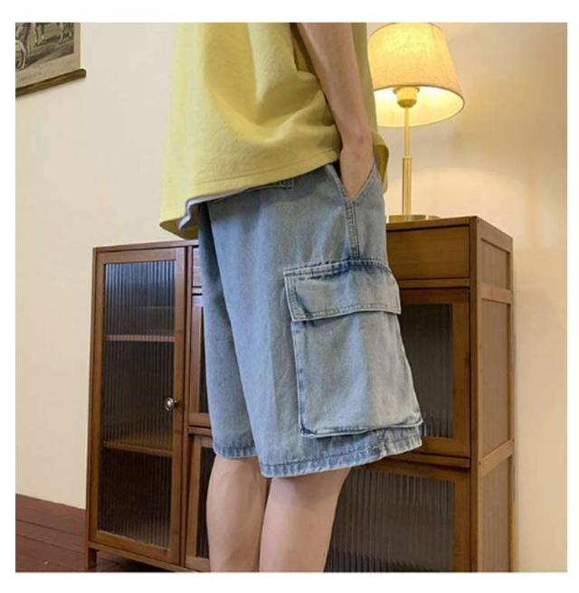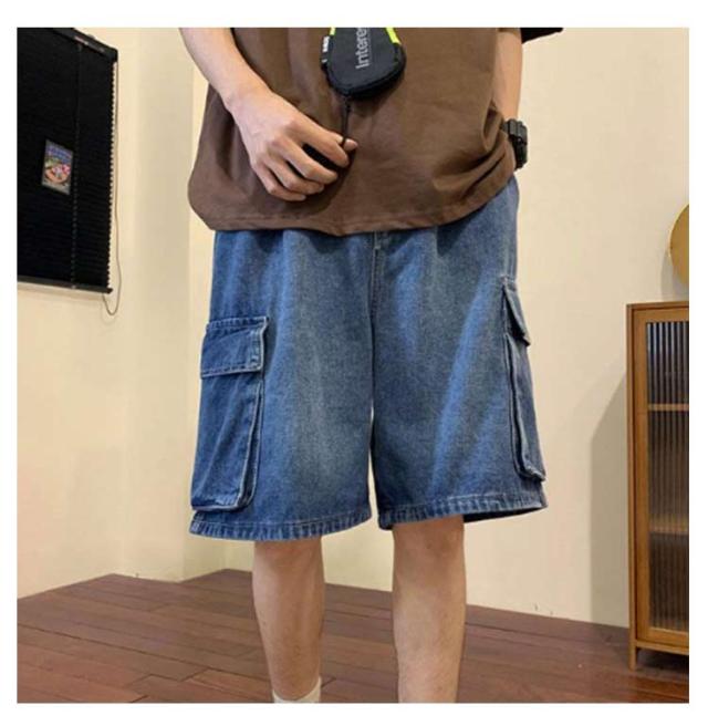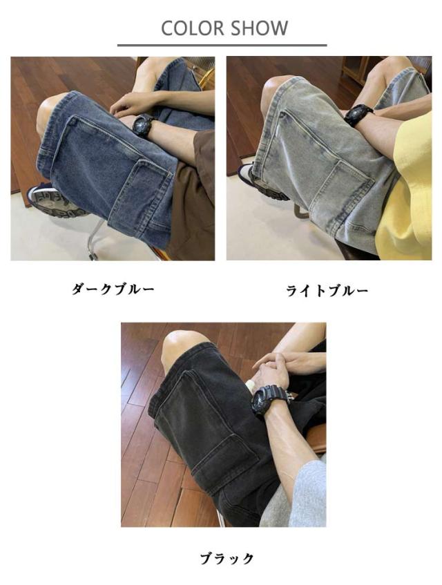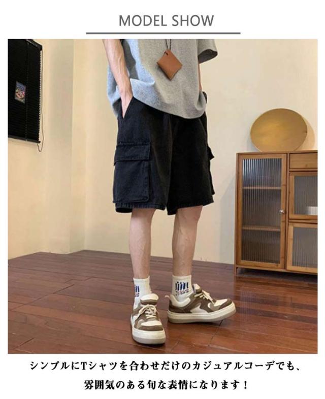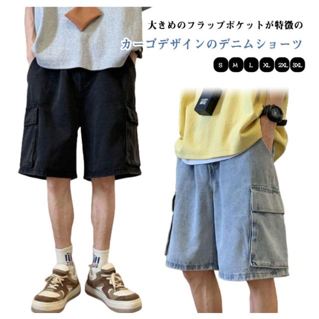 カーゴパンツ ジーンズ メンズ ハーフパンツ カジュアル デニムパンツ デニムパンツ ショートパンツ 半ズボン ワイドパンツ パンツ 短パン ストリート おしゃれ ボトムス 男性 太い 太め ルーズ ゆったり 大きいサイズ 体型カバー ダンス衣装