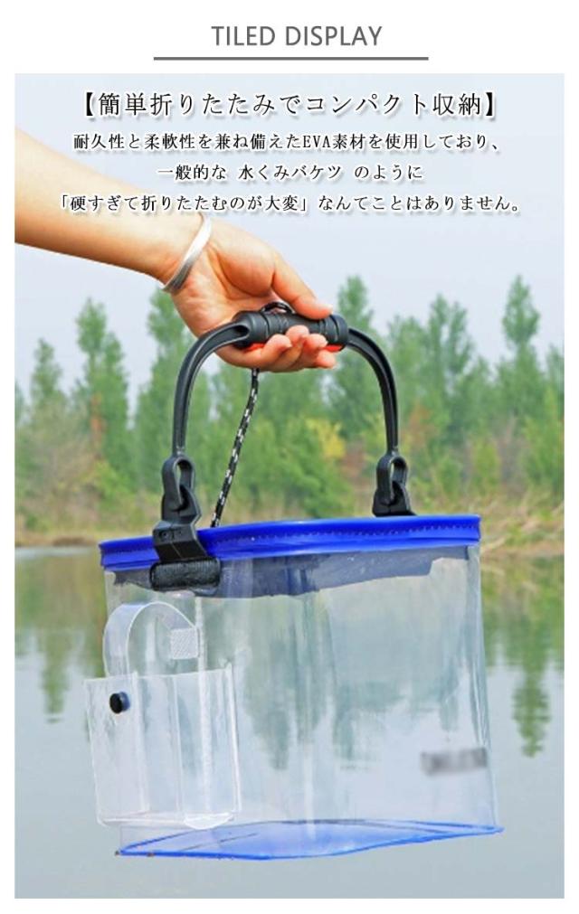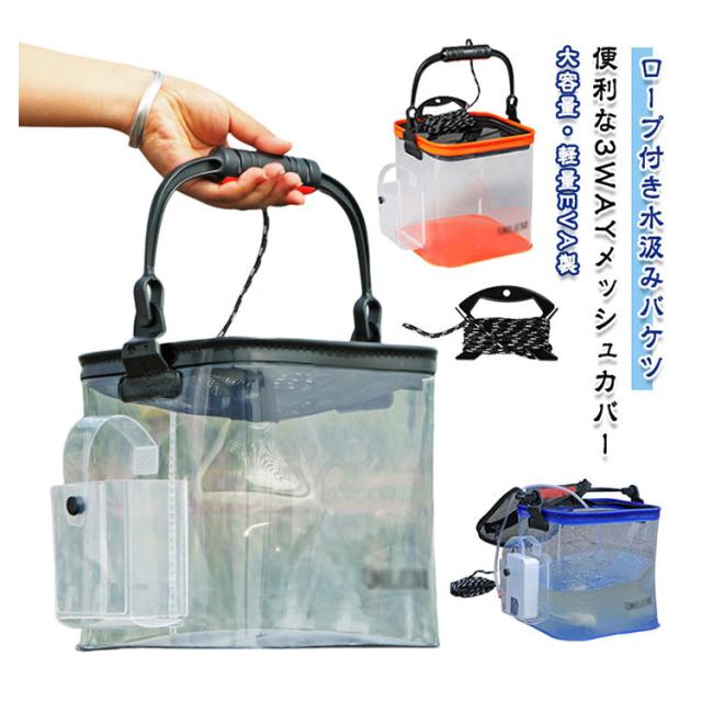 水汲み 折りたたみバケツ 大容量 バケツ 釣り用バッカン 釣り キャンプ 透明 多機能 【魚が一目瞭然】 生かしバケツ メッシュカバー付き 釣り道具 アウトドア 釣り用バッカン 防災収納 多機能 アウトドア 園芸 掃除 洗車 洗濯