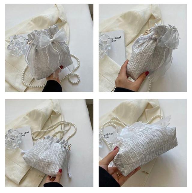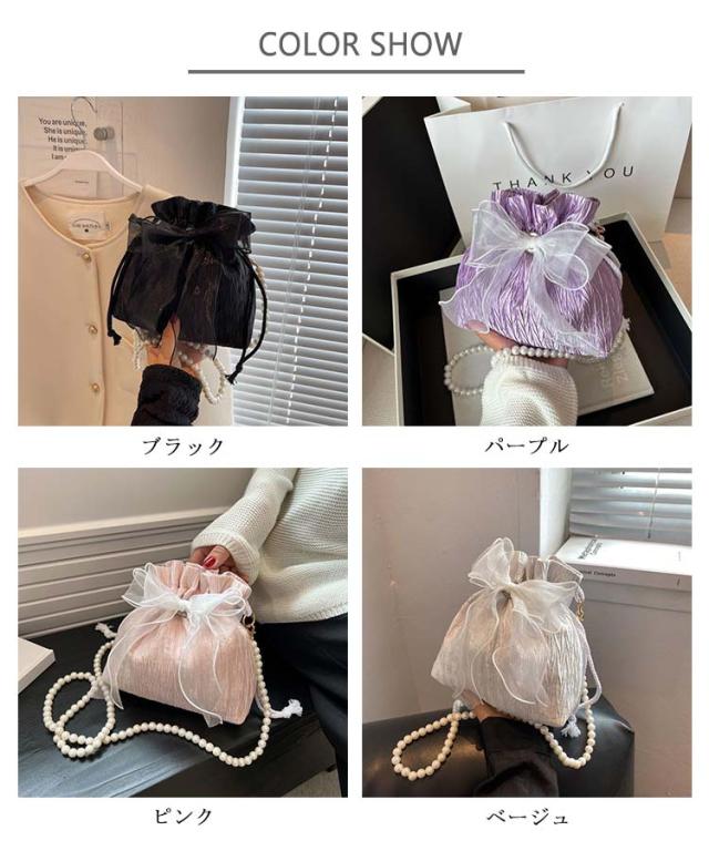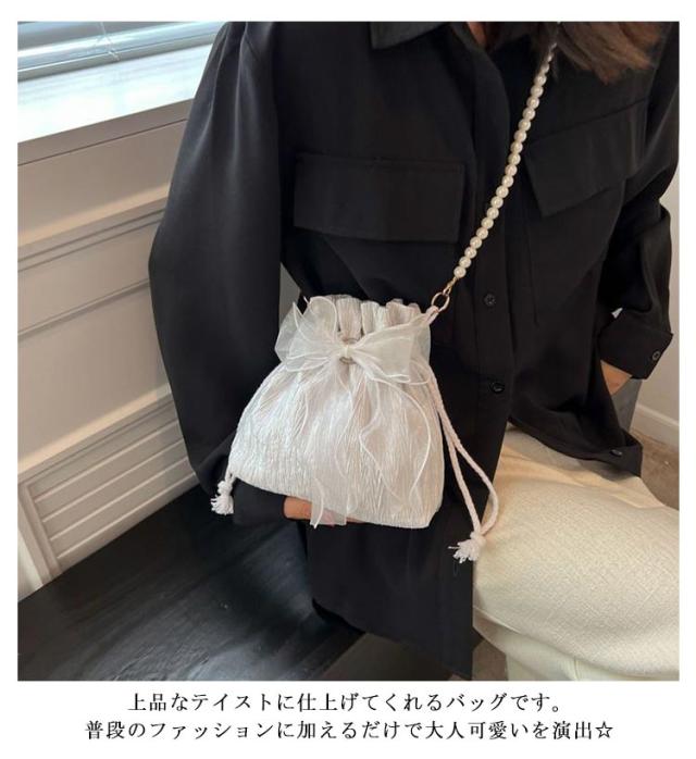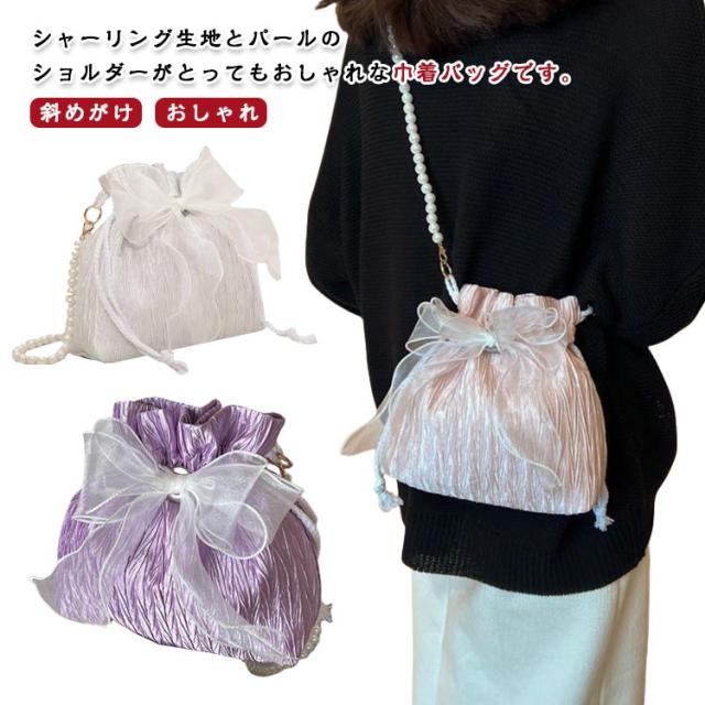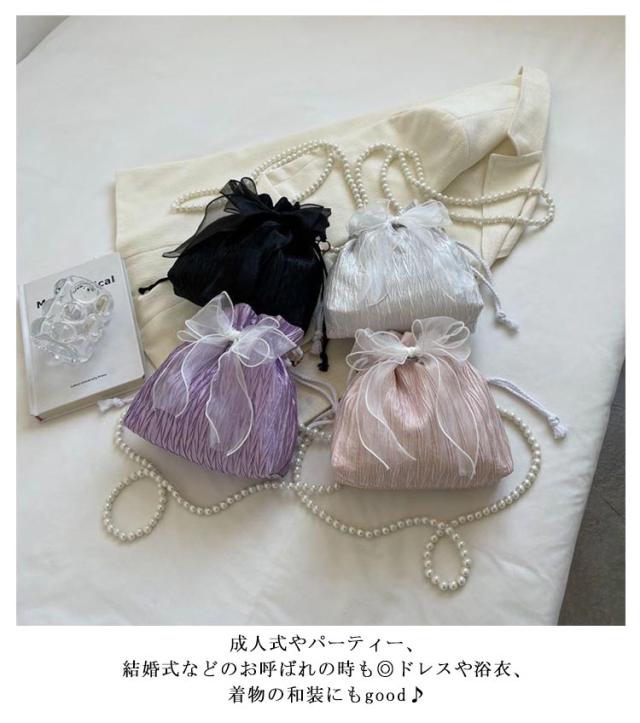 おしゃれ ポシェット レディース 花見 巾着 斜めがけ 成人式 パール リボン ポーチ 小さめ ミニ ショルダーポーチ 巾着バッグ 巾着ポーチ かわいい 結婚式 和装 洋服 ショルダーバッグ 卒業式 巾着バッグ 花火大会 浴衣 和装