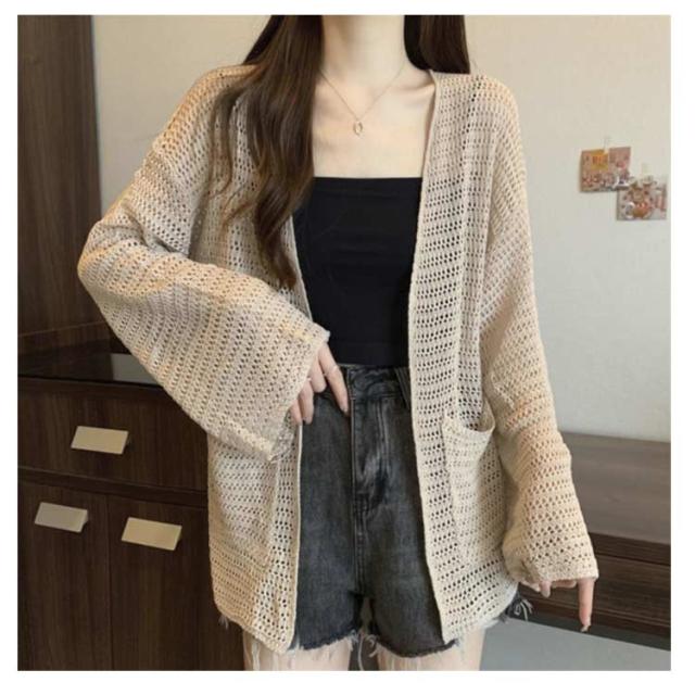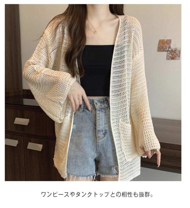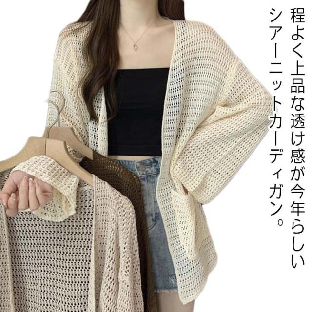 無地 レディース 薄手 サマーニット 長袖 カーディガン 羽織り ミディアム丈 シアー 透け感 Vネック ロング丈 カーデ ロングカーディガン アウター 春夏 シンプル アウター UV対策 冷房対策 無地 30代 ゆったり オフィス 通勤 カジュアル 20代 カーディガン 40代