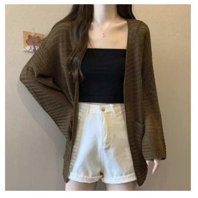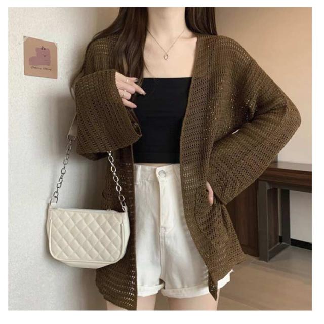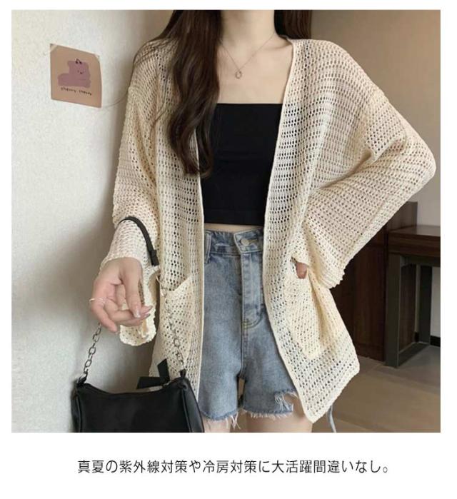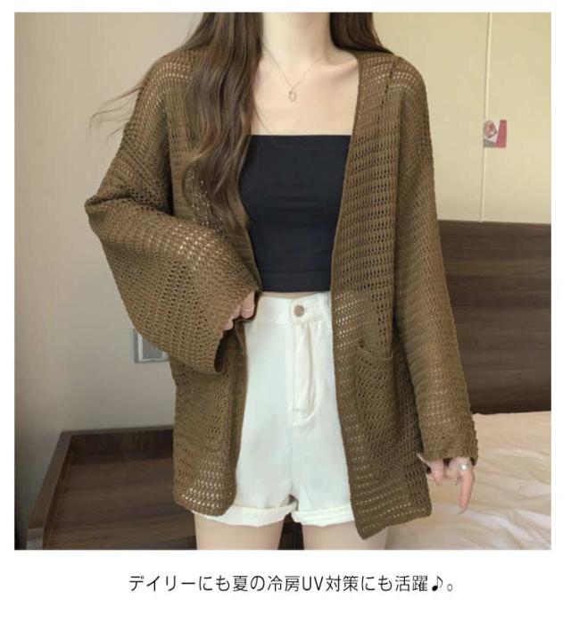 | 程よく上品な透け感が今年らしいシアーニットカーディガン。 ワンピースやタンクトップとの相性も抜群。 真夏の紫外線対策や冷房対策に大活躍間違いなし。 デイリーにも夏の冷房UV対策にも活躍♪。 カジュアルにも使えるコンパクトカーディガンです。 | |