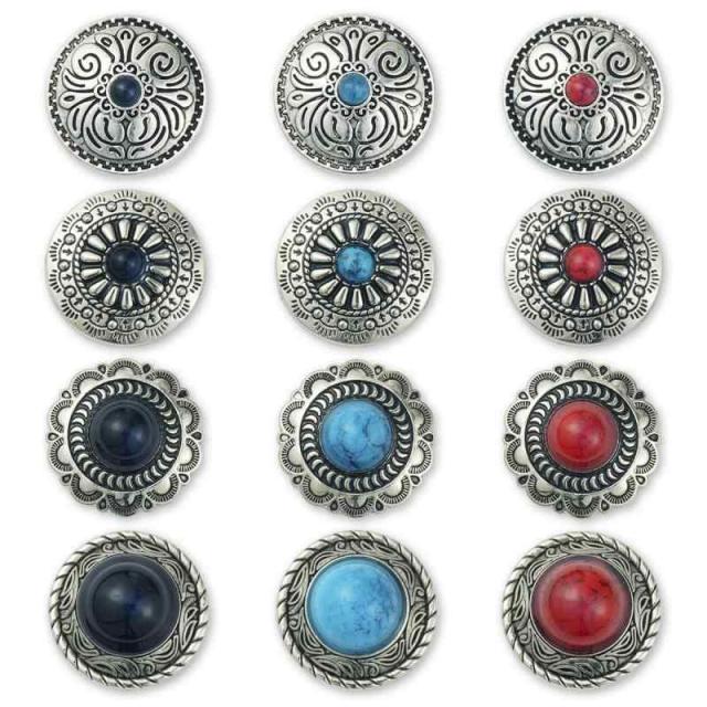 コンチョ ボタン 12個セット ターコイズ ネジ式 シルバー 25mm デージー 唐草 フラワー レザークラフト 財布 装飾ボタン