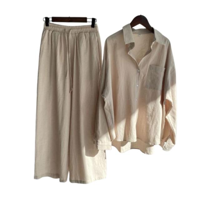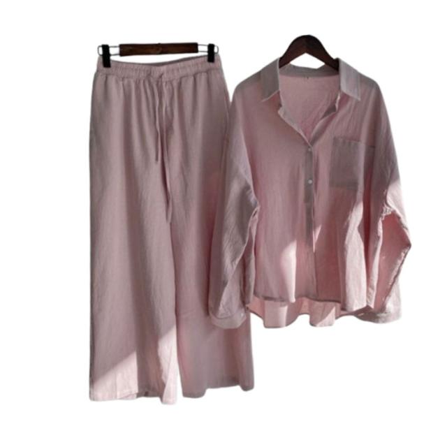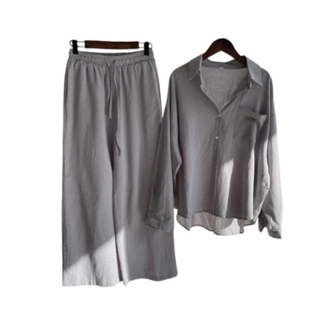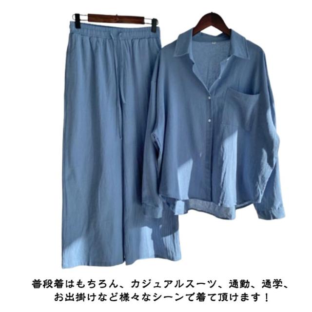 綿麻 春秋 セットアップ ワイドパンツ 長袖 セットアップ シャツ リネンシャツ シンプル レディース 上下セット コットンリネン ロングパンツ ルームウェア オフィスカジュアル おしゃれ 大きいサイズ 体型カバー きれいめ 薄手 着痩せ 日焼け対策 涼しい