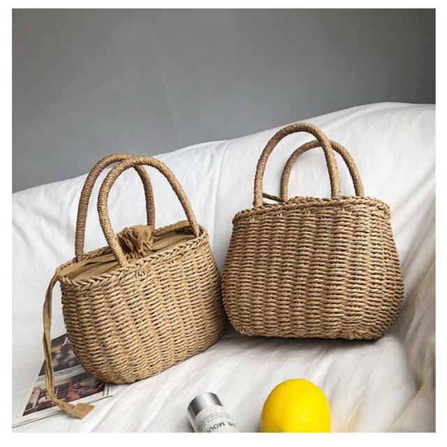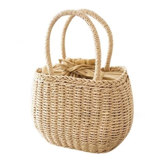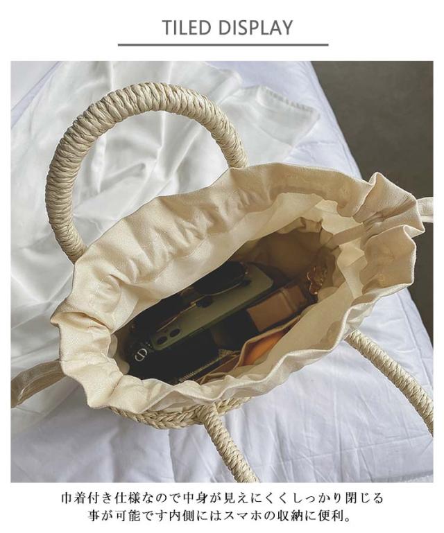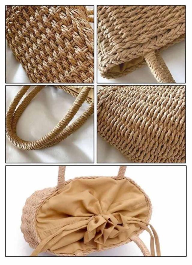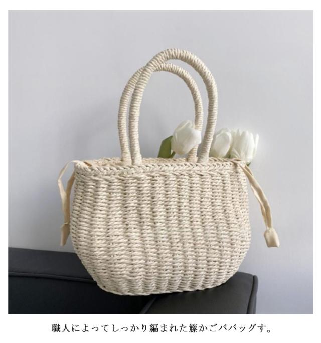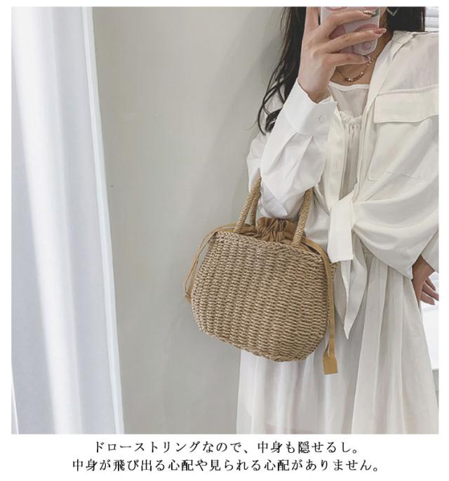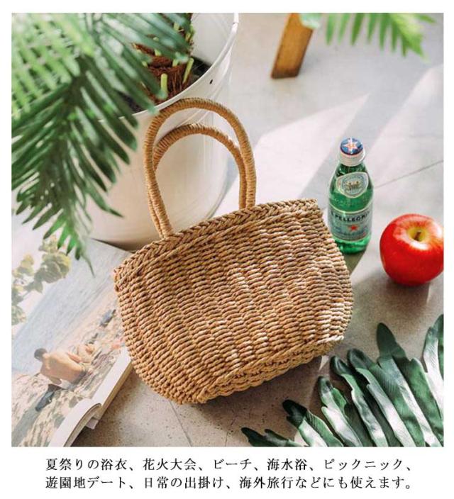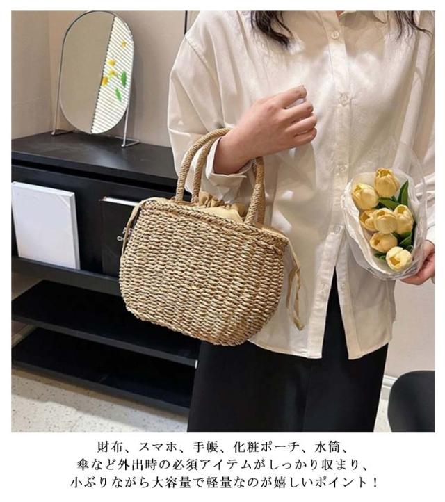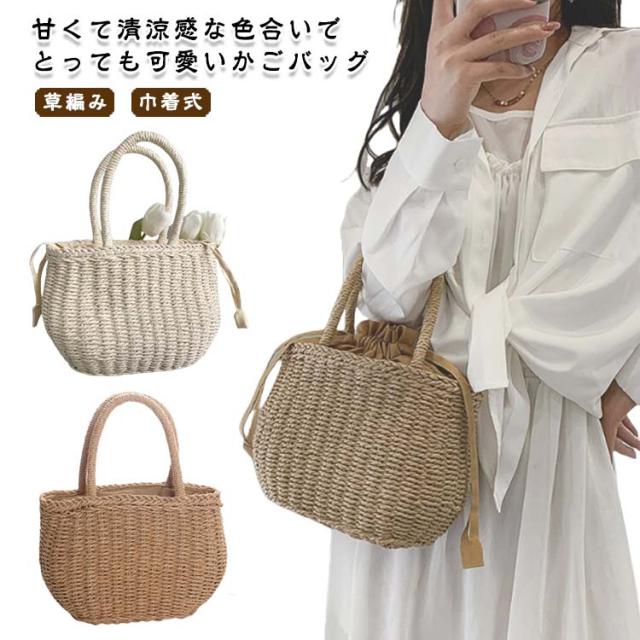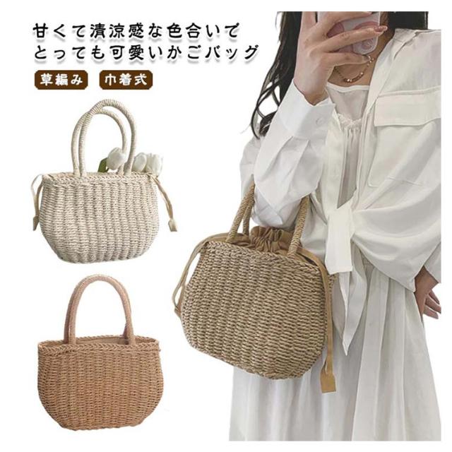 かごバッグ 籠バッグ お花見 レディース 手提げ 巾着式 ハンドバッグ 可愛い 草編み かご編みバッグ ペーパーストローバッグ 花火大会 バスケット型 ナチュラル 旅行用 夏 巾着付き 水着 浴衣 かごバッグ リゾート