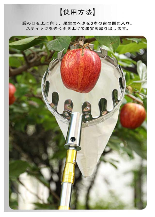 フルーツピッカー 果物収穫 ベリーピッカー 収穫ツール ステンレス 果物取り 高枝取り 伸縮式 高枝鋏 果物 果物キャッチャー ピッキングツール 軽量 高空 果物摘み機 高枝切りばさみ 園芸用具 ガーデニングツール ガーデン用品 果樹用 果物摘み