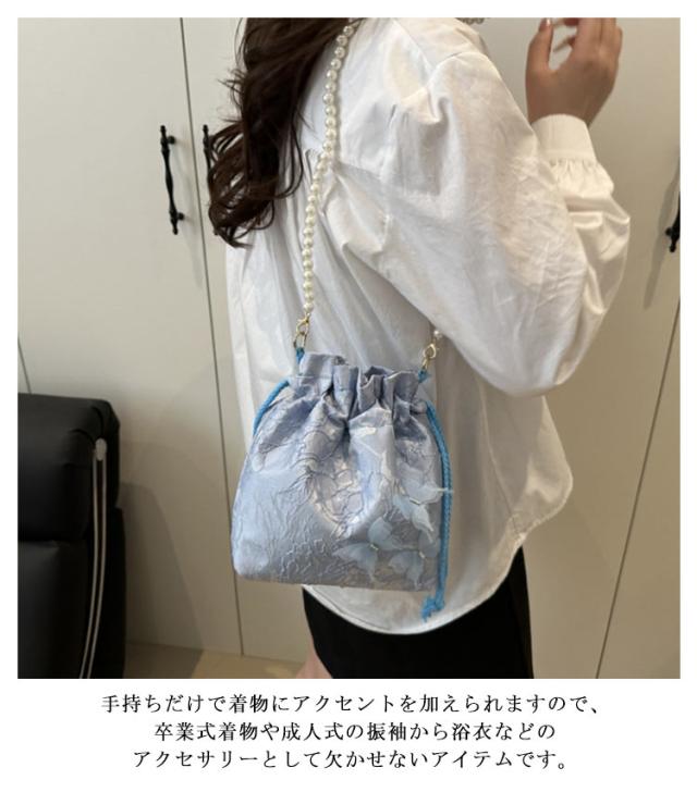 巾着バッグ パールチェーン 手持ち 取り外し可能 浴衣 巾着 巾着袋 振袖 ショルダー 手持ち ショルダー バッグ 洋服 付き レース 巾着バッグ 成人式 結婚式 着物 浴衣 和装 袴 成人式 卒業式 花見 花火大会 夏祭り 花柄