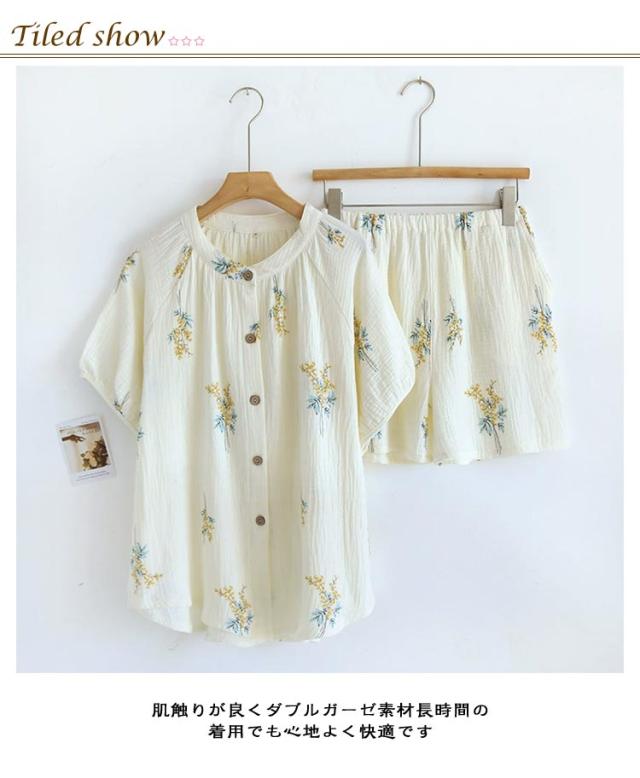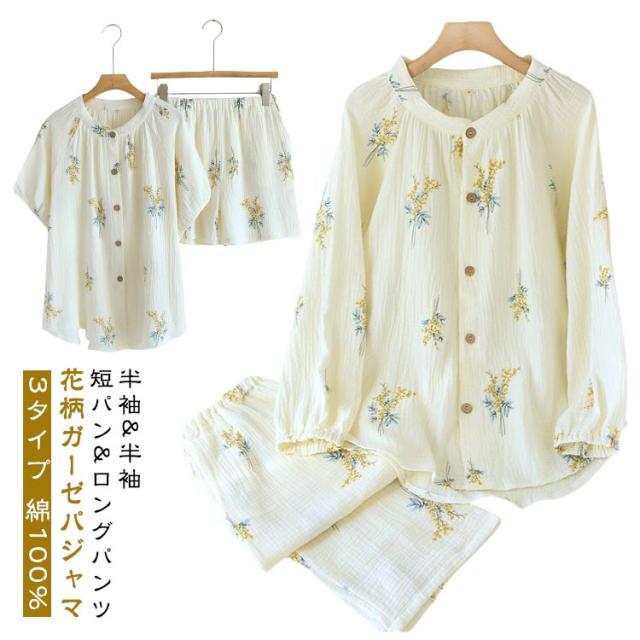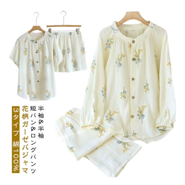 | 3タイプ 綿100% 花柄ガーゼパジャマ 半袖&半袖 短パン&ロングパンツ 肌触りが良くダブルガーゼ素材長時間の着用でも心地よく快適です 綿100%でお肌に優しい、ハリのある生地です。 通気性・吸水性にすぐれた素材でさらりと快適。 パジャマを着たままで、とても快適に眠れました。 パジャマでゆっくりお部屋時間♪ | |