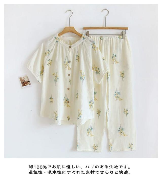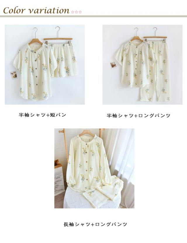 パジャマ ガーゼ 春 長袖 tシャツ ショート 綿100% 半袖 レディース 綿100% 夏 ダブルガーゼ 花柄 綿 二重ガーゼ ナイトウェア セットアップ 上下セット トップス ルームウェア ロング パンツ ウエストゴム ふんわり
