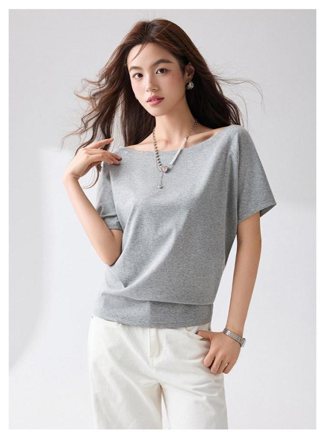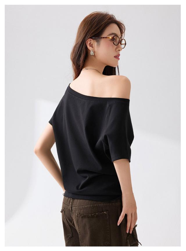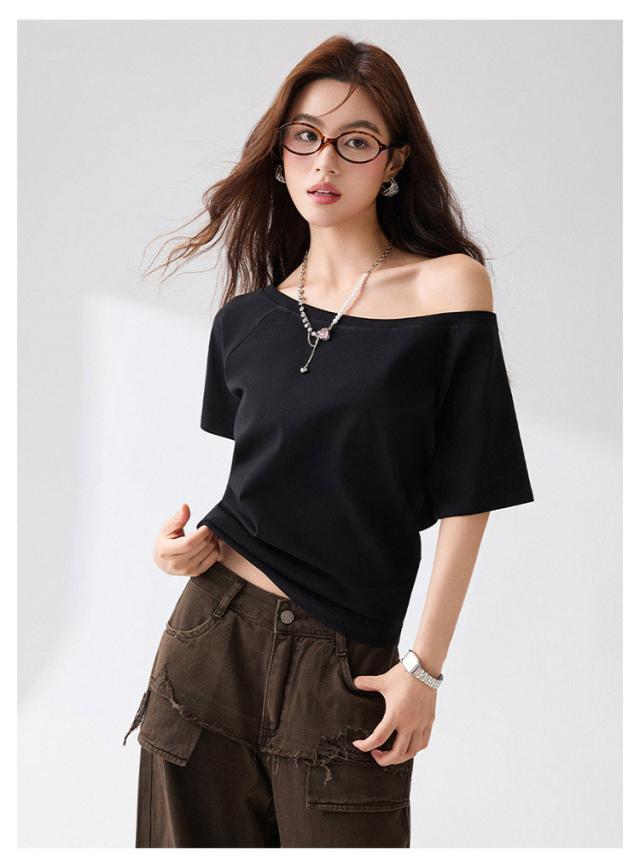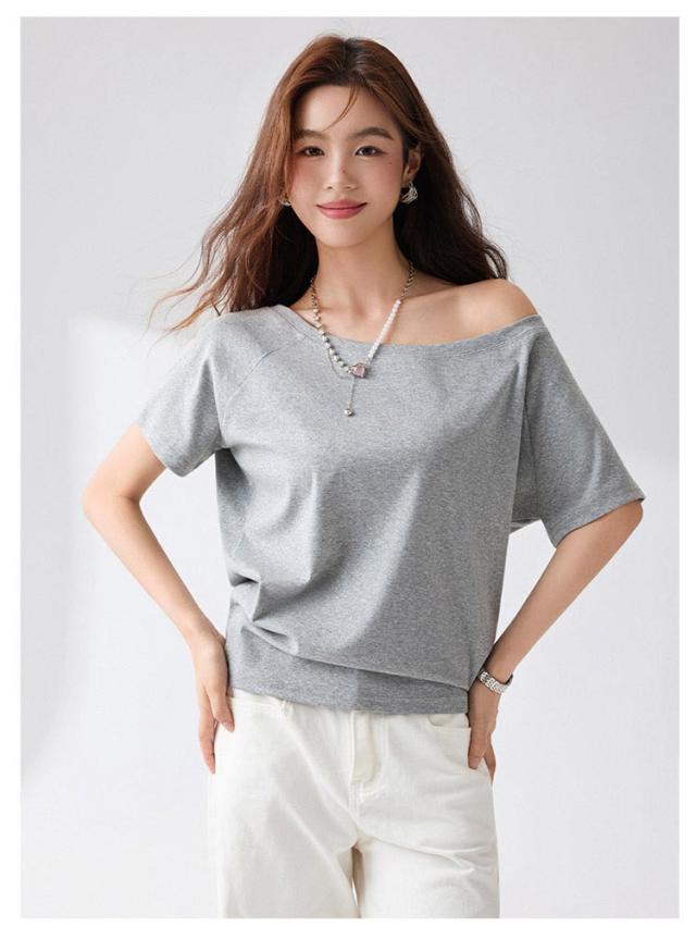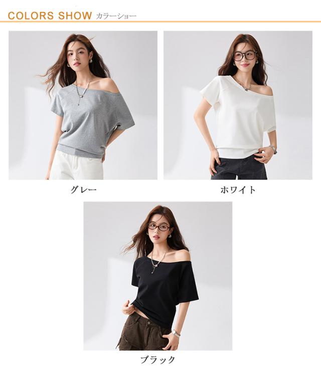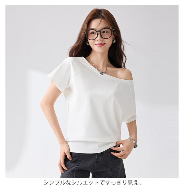 Tシャツ オフショル カットソー ストレッチ 綿 コットン Tシャツ オフショルダー 半袖 ティーシャツ 無地