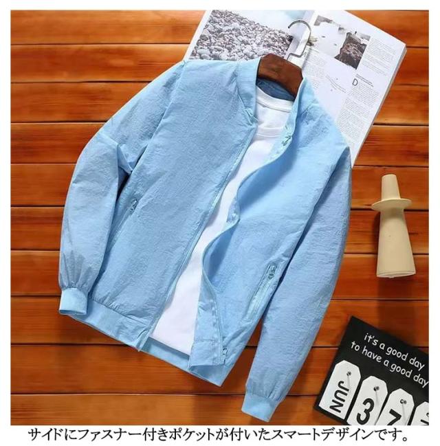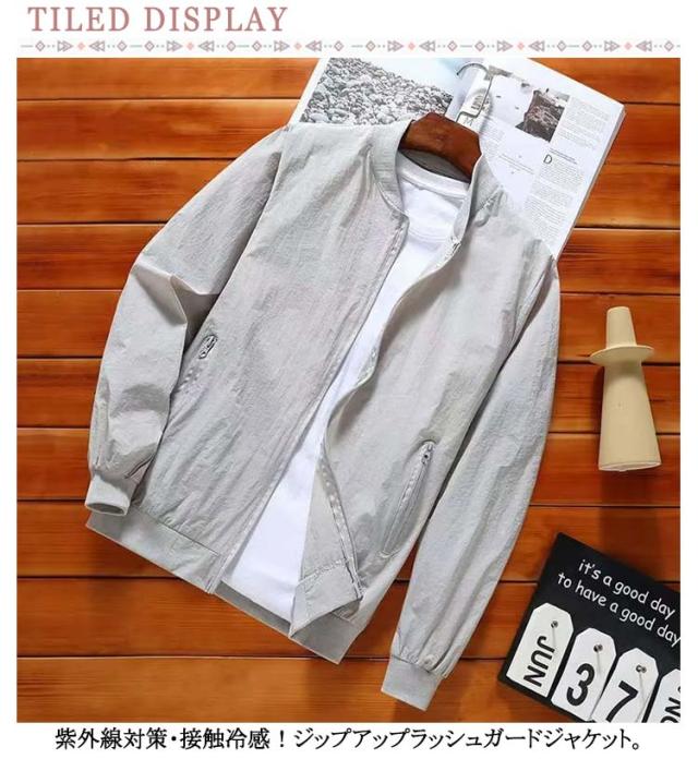 ひんやり ラッシュガード UVカット 接触冷感 紫外線対策 ジャケット メンズ メンズ 無地 スタジャン ブルゾン 薄手 吸汗速乾 夏用 冷房対策 ジャンパー ジャケット 日焼け防止 軽量 メンズ スタンドカラー 大きいサイズ カジュアル アウトドア
