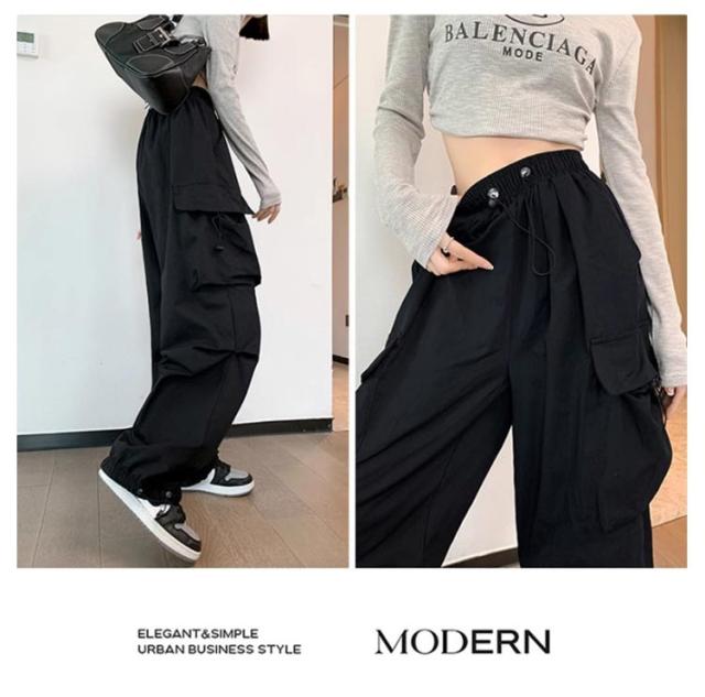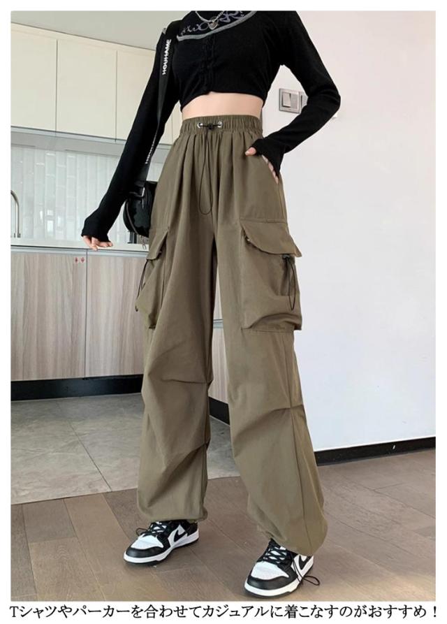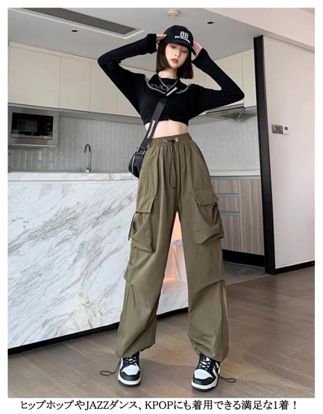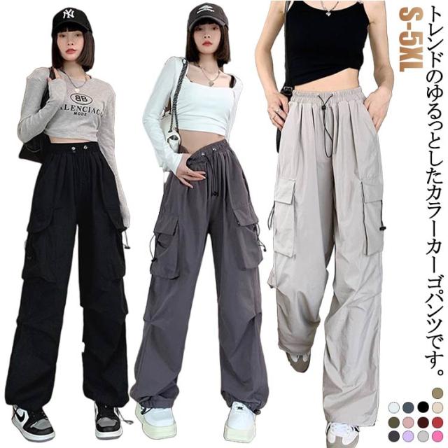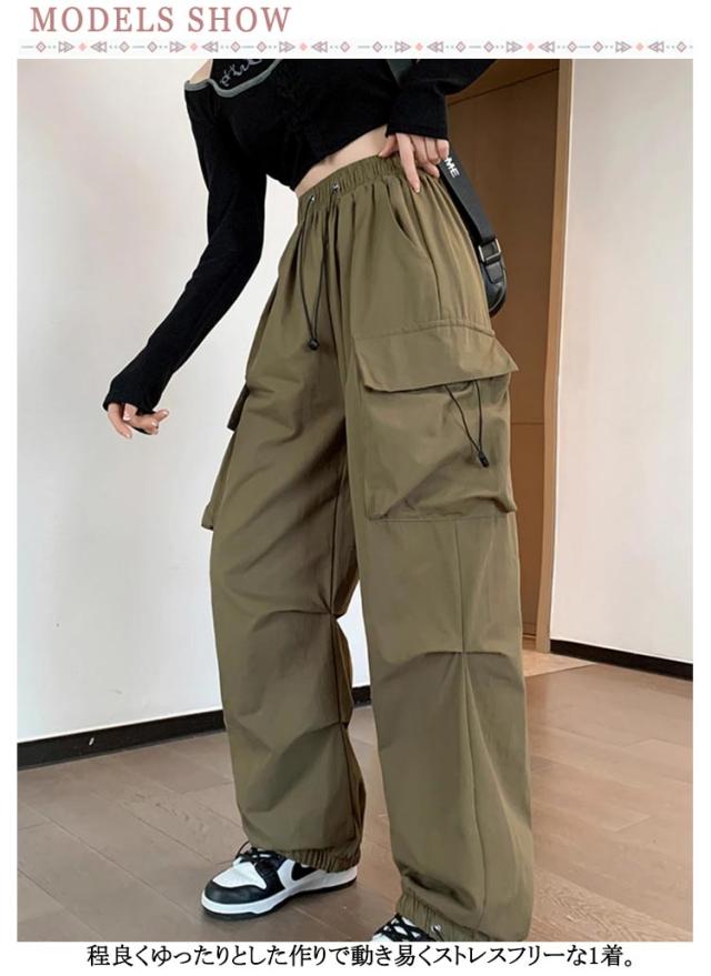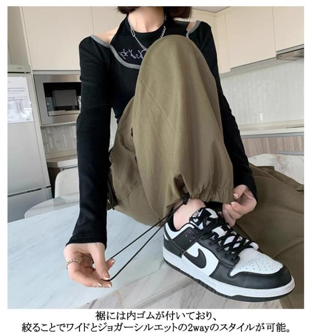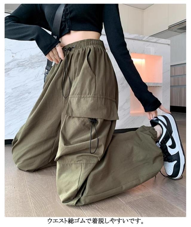ワークパンツ 涼しい ウエストゴム ボトムス 裾ドロスト レディース 夏 夏 ダンスパンツ 春 おしゃれ ワイドパンツ ロング ゆったり 秋 2way ミリタリー 無地 カーゴパンツ レディース 大きいサイズ ストリート レディース イージーパンツ