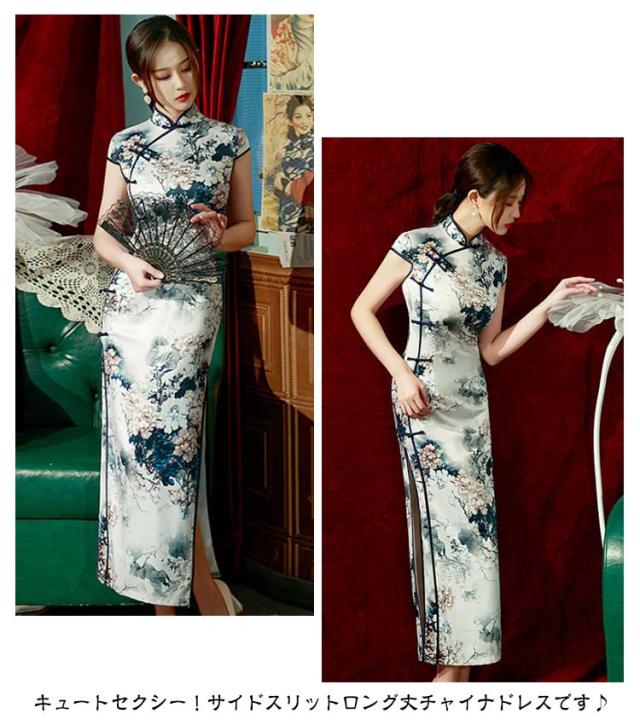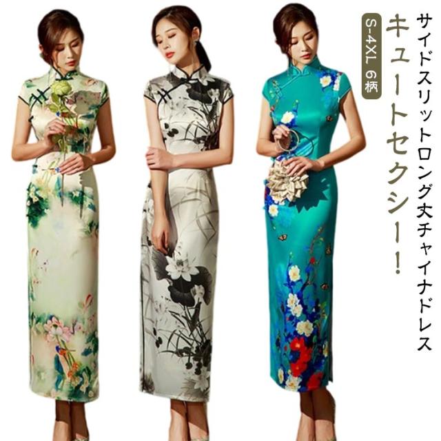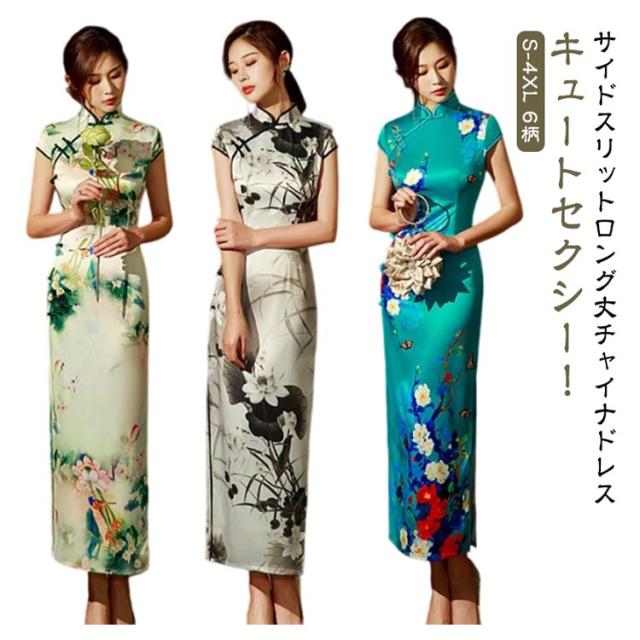 パーティー チャイナドレス 大きいサイズ セクシー 半袖 セクシーチャイナ ドレス S-4XL チャイナ ロング ロングチャイナ サイドスリット ロング丈 チャイナドレス コスチューム コスプレ 衣装 キャバ お水