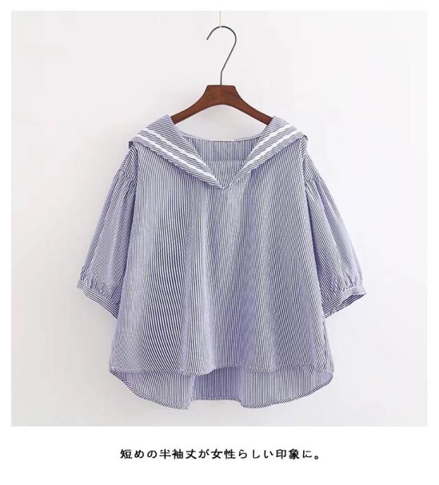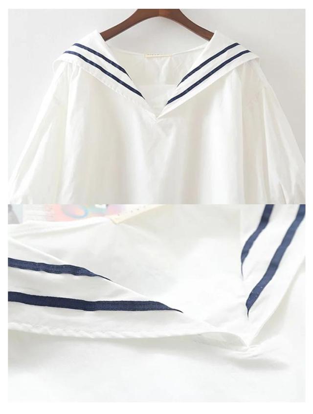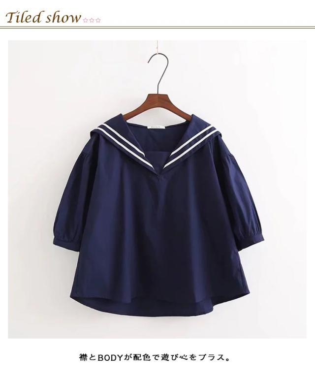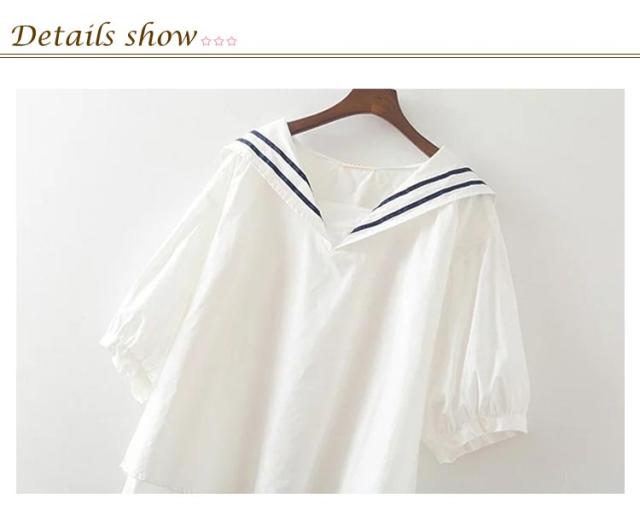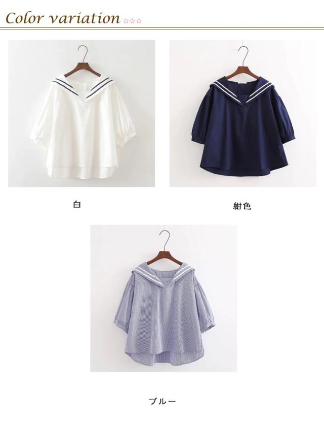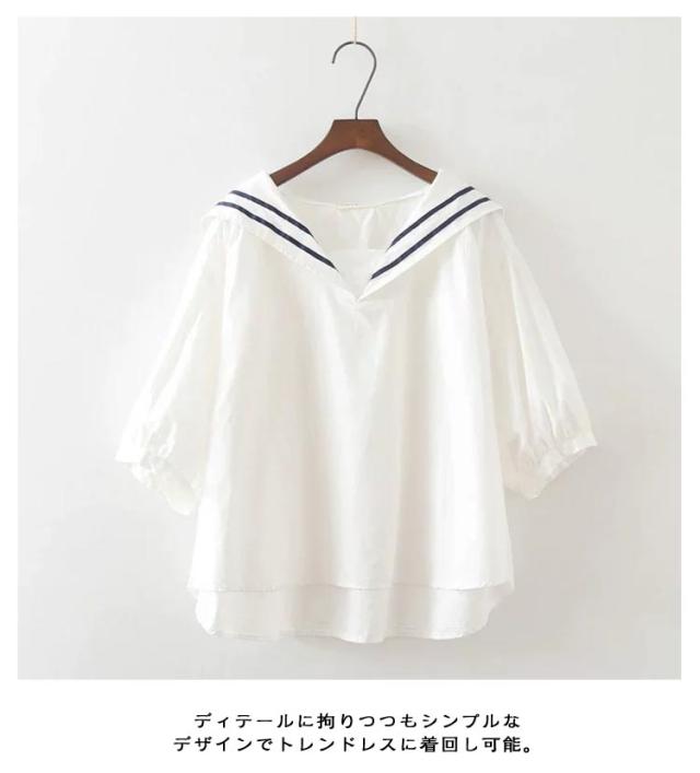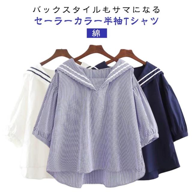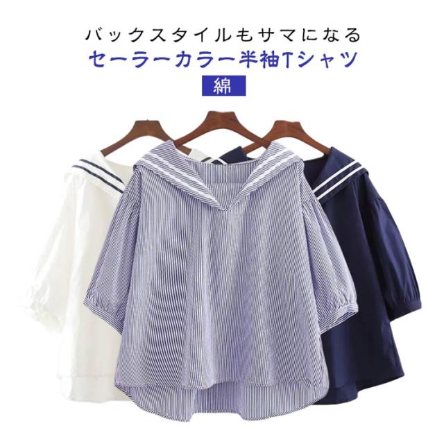 半袖 大きいサイズ シャツ 白 ブルー 綿 ブラウス 無地 ゆったり カジュアル 紺色 シャツブラウス セーラーカラー 夏 白tシャツ コットン tシャツ 春 セーラーカラー シンプル トップス プルオーバー 着やすい 学生