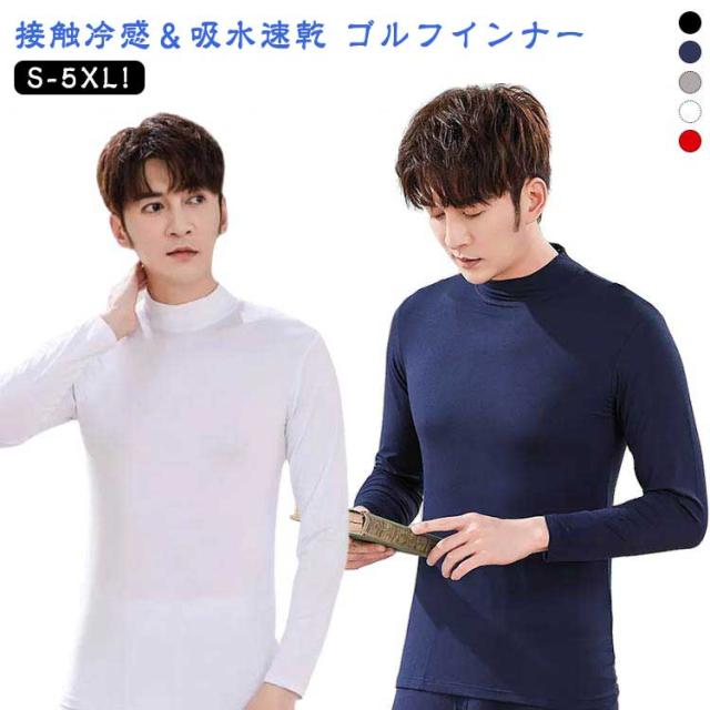 涼感 インナーシャツ メンズ ゴルフウェア ゴルフ ゴルフ スポーツシャツ 薄手 ハイネック インナーシャツ インナー 冷感 接触冷感 夏 2枚 長袖 アンダーウェア UVカット 通気 吸汗 速乾 日焼け対策 ストレッチ ひんやり ゴルフ スポーツウェア 父の日 プレゼント