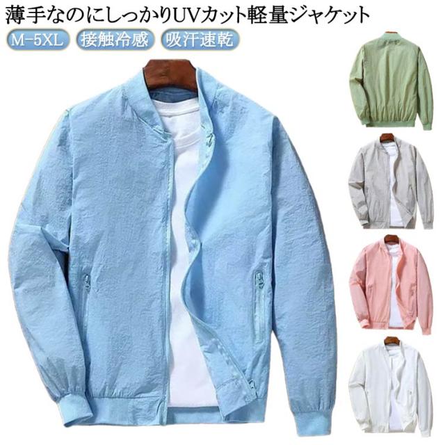 メンズ メンズ ジャケット UVカット ジャケット ブルゾン 無地 ひんやり 夏用 紫外線対策 接触冷感 薄手 吸汗速乾 メンズ 冷房対策 ジャンパー スタジャン 日焼け防止 軽量 ジップアップ スタンドカラー 大きいサイズ カジュアル アウトドア