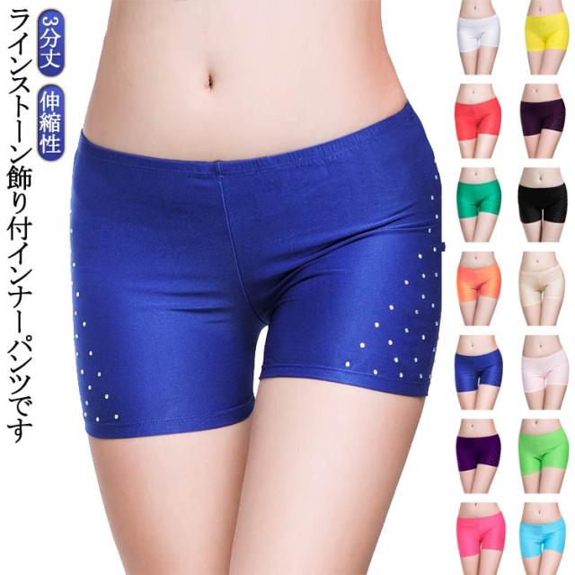 ベリーダンス 三分丈 見せパンツ インナーパンツ ベリーダンス レディース インナーショートパンツ ラインストーン付 ダンスインナー ショーツ ラインストーン飾り付 社交ダンス