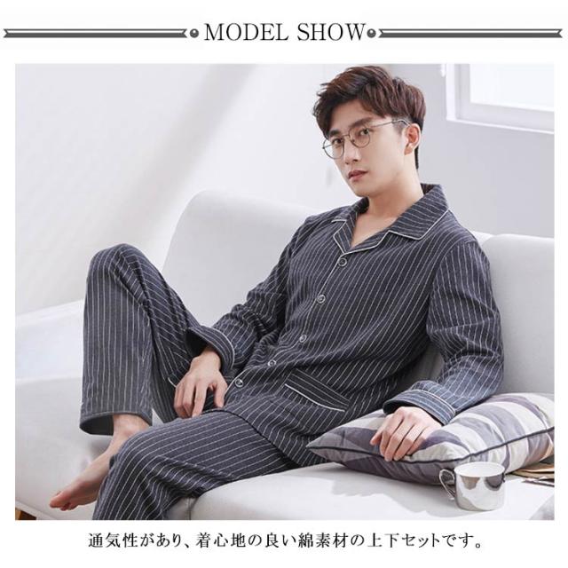 | M-3XL!前開きパジャマ。通気性があり、着心地の良い綿素材の上下セットです。 パジャマはご自宅用としてはもちろん、プレゼントとしても喜ばれます。 お家でゆったり過ごす時間も大切!優しい着心地ののルームウェアでリラックスタイムを楽しんでみてはいかがでしょうか☆ 前ボタンタイプで脱ぎ着しやすいので、入院時ときにもおすすめ。 ウエストゴム仕様で着脱しやすくリラックス感のある着心地が魅力。 男性の友人へのプレゼントや誕生日、父の日などのギフトにも。 | |