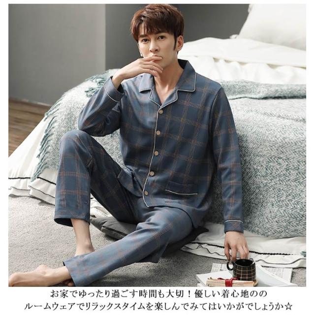 パジャマ メンズ 綿 コットン 薄手 春 夏 秋 長袖 長ズボン 2点セット ルームウェア 上下セット 春 夏 秋 冬 コットン 前開き パジャマ 男性 紳士 部屋着 寝巻き ナイトウェア 入院 ルームウェア 大きいサイズ 男の子 旦那 チェック 総柄 送料無料