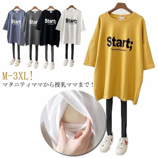 授乳服 Tシャツ 半袖 ロゴT クルーネック インナー ロゴTシャツ トップス 授乳しやすい 安心 便利 ティーシャツ チュニック 丸首 授乳服 ルームウェア ロング丈 出産準備 マタニティウェア 春 夏 授乳口 マタニティ カットソー 妊婦服 洗濯可 おしゃれ 送料無料