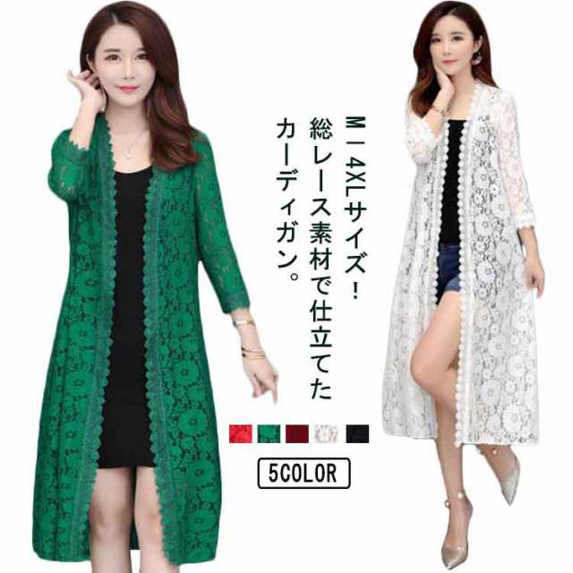 カーディガン レディース 薄手 トップス ロング丈 レースカーディガン 春夏 総レース ロングカーディガン 羽織り シースルー 透け感 大きいサイズ 花柄 結婚式 紫外線対策 冷房対策 フェミニン セクシー M L XL 2XL 3XL 4XL