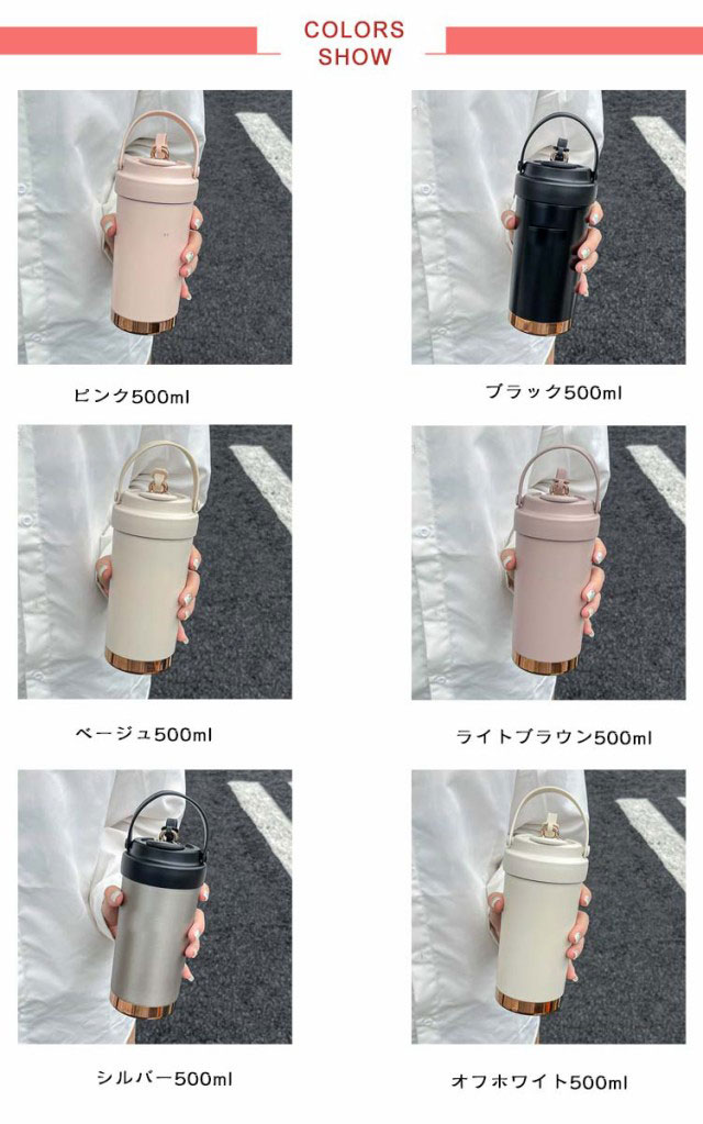 | 色 | ピンク500ml ブラック500ml ベージュ500ml ライトブラウン500ml シルバー500ml オフホワイト500ml ピンク750ml ブラック750ml ベージュ750ml ライトブラウン750ml シルバー750ml オフホワイト750ml |