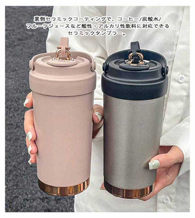 | 業界初!セラミック・タンブラー 2個セット 伸縮ガラスストロー付きコーヒータンブラー。 裏側セラミックコーティングで、コーヒー/炭酸水/フルーツジュースなど酸性・アルカリ性飲料に対応できるセラミックタンブラー。 金属の嫌なにおいがなく、コーヒーやお茶の本来の香りや味わいを最後のひと口まで堪能することができるセラミックタンブラー。 真空断熱構造で保温・保冷を長時間キープ。 直飲みもストローもできるから、様々な場面に対応。 伸縮できるストローは飲みやすく便利です。飲まない時はストローキャップで収納可能、ストローキャップはシリコンベルト付きで紛失されることがありません。 フタを外して、広口で氷を入れやすく、隅々まで手軽に洗えることができます。 気密性が良く、水漏れがありません。カバンの中に入れて持ち運ぶ時も安心。 持ち運びに便利なシリコン取っ手が付き、日常の携帯に便利です。なお、車のドリングホルダーにも対応できるから車通勤やドライブ時も美味しい飲み物を楽しめます。 オフィス、家庭、学校、バーなどでコーヒー、紅茶、ミルク、炭酸水、フルーツジュースなどの温かい飲み物と冷たい飲み物を簡単に楽しめます。 は会社で働く時や学校へ通う時や旅行する時などに使えます。嬉しい2個セット、自分で使えるだけでなく、お友達やお父さん、お母さんへのプレゼントにもおすすめの保温保冷セラミックストロータンブラーです。 | |