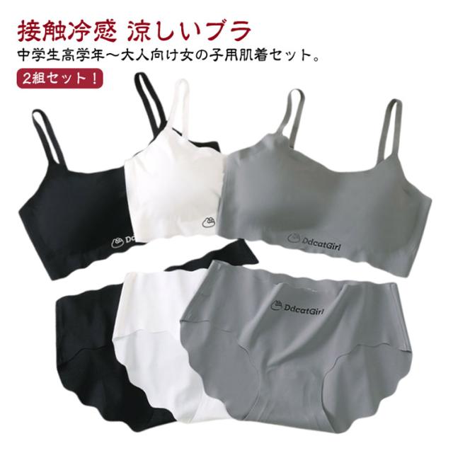 ブラジャー ショーツ 2組セット 上下セット キッズ 子供 無地 パッド付き ブラジャー カップ付き ノンワイヤー 冷感 ブラ インナー 接触冷感 涼しいブラ 夏 シームレス 大人 女の子 パンツ 肌着 アンダーウェア ジュニアブラ スポーツブラ 中学生 下着 可愛い 送料無料